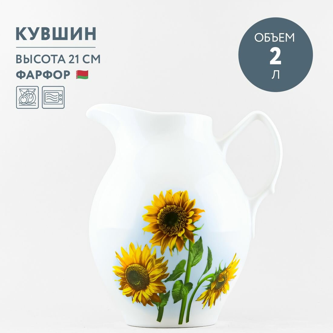 Кувшин фарфоровый без крышки 2 л Добрушский фарфор Подсолнух интересное: