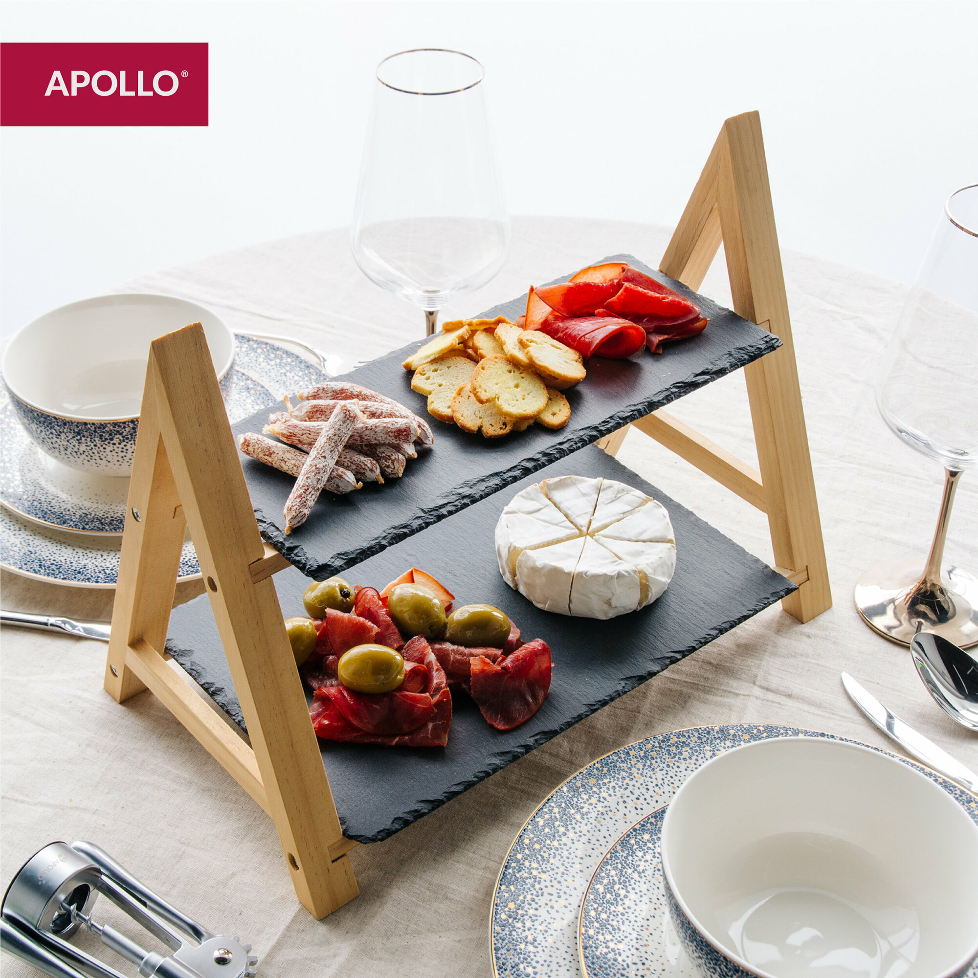 Сервировочная сланцевая доска, подставка двухъярусная из дерева APOLLO "Tapas" интересное: