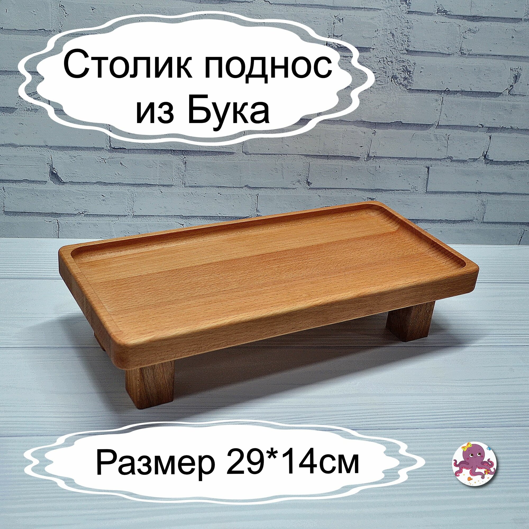 Поднос деревянный на ножках из Бука, поднос декоративный, 29-14 см, Мастерская Осьминожки интересное: