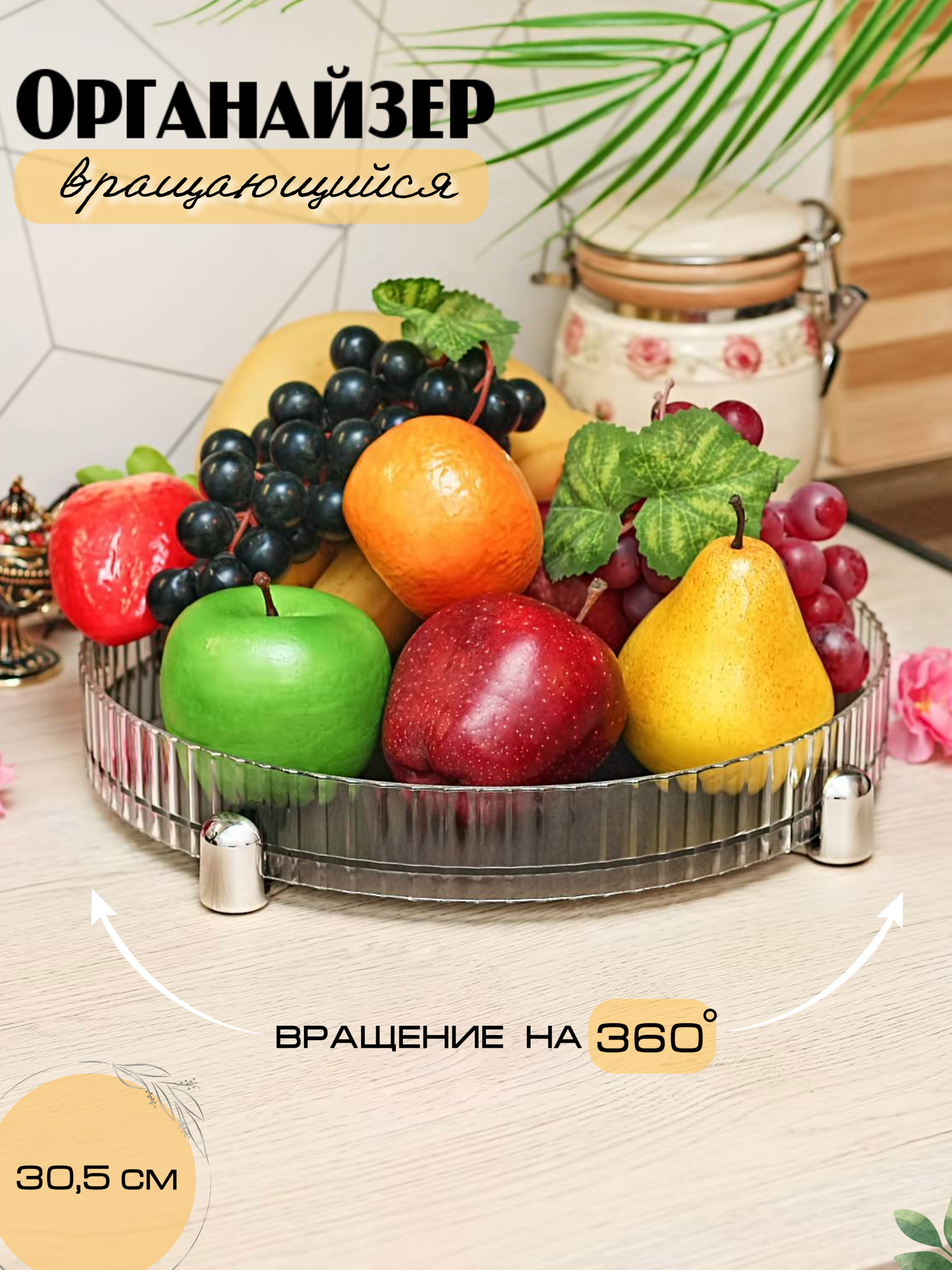 Поднос прозрачный пластиковый SAVEZ для кухни органайзер 30,5 см прозрачный, серебристый интересное: