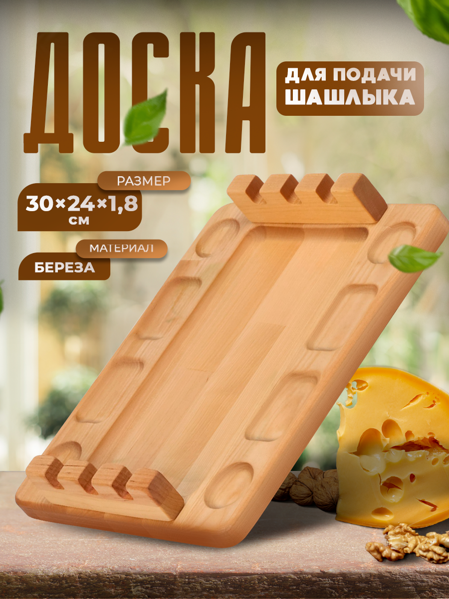 Доска для подачи шашлыка Adelica «3 шампура», 30×24×1.8 см, массив берёзы интересное: