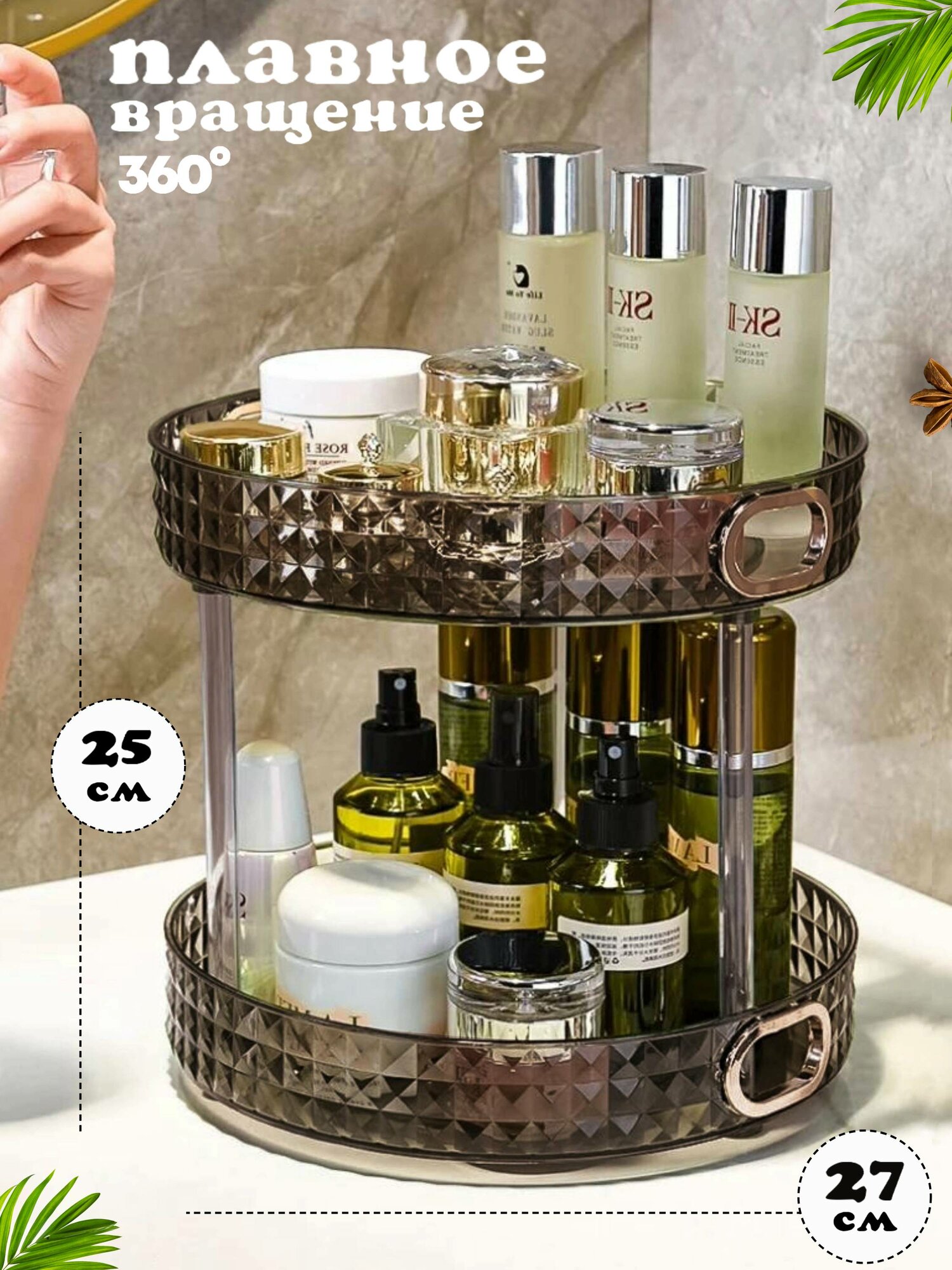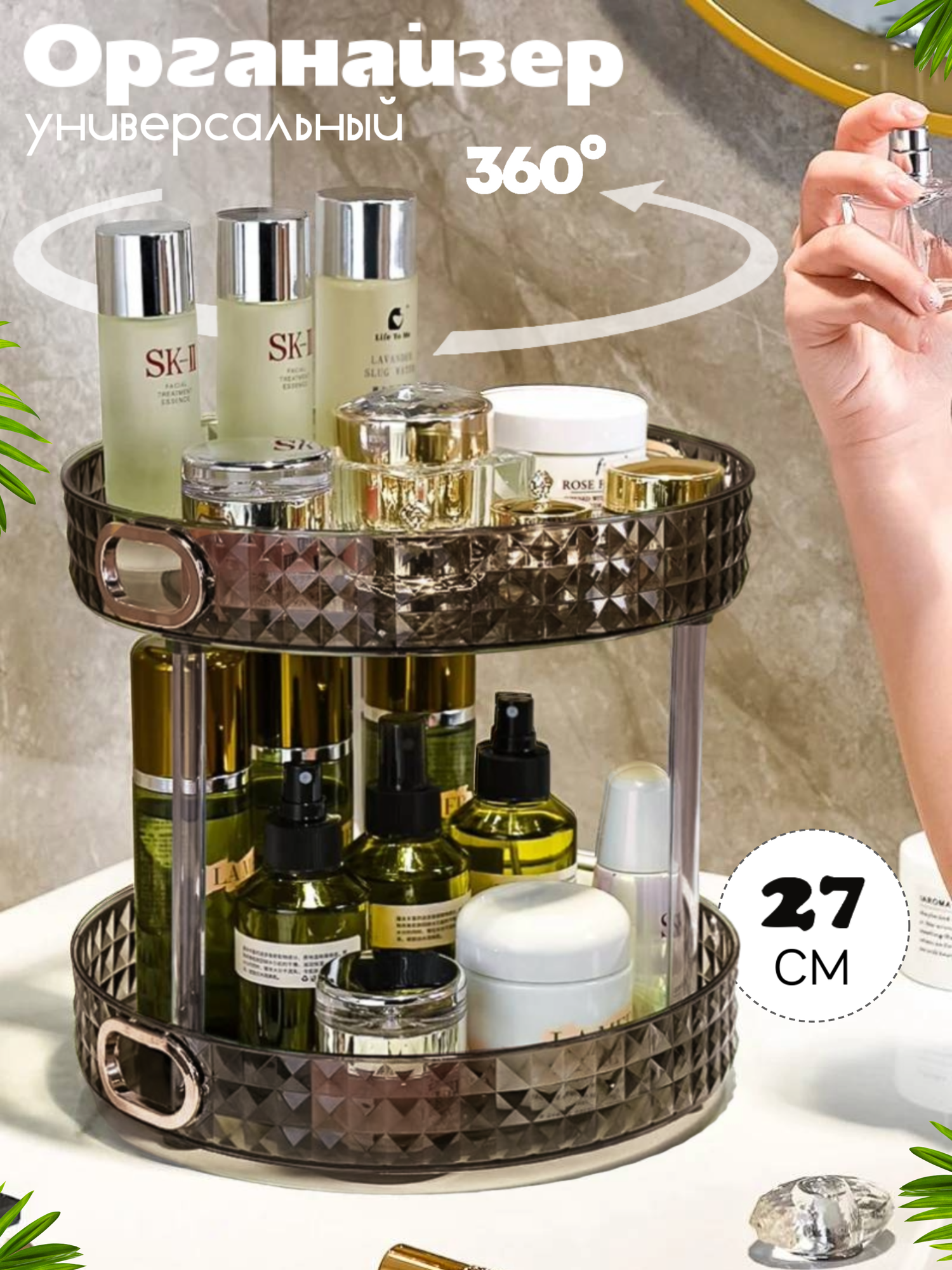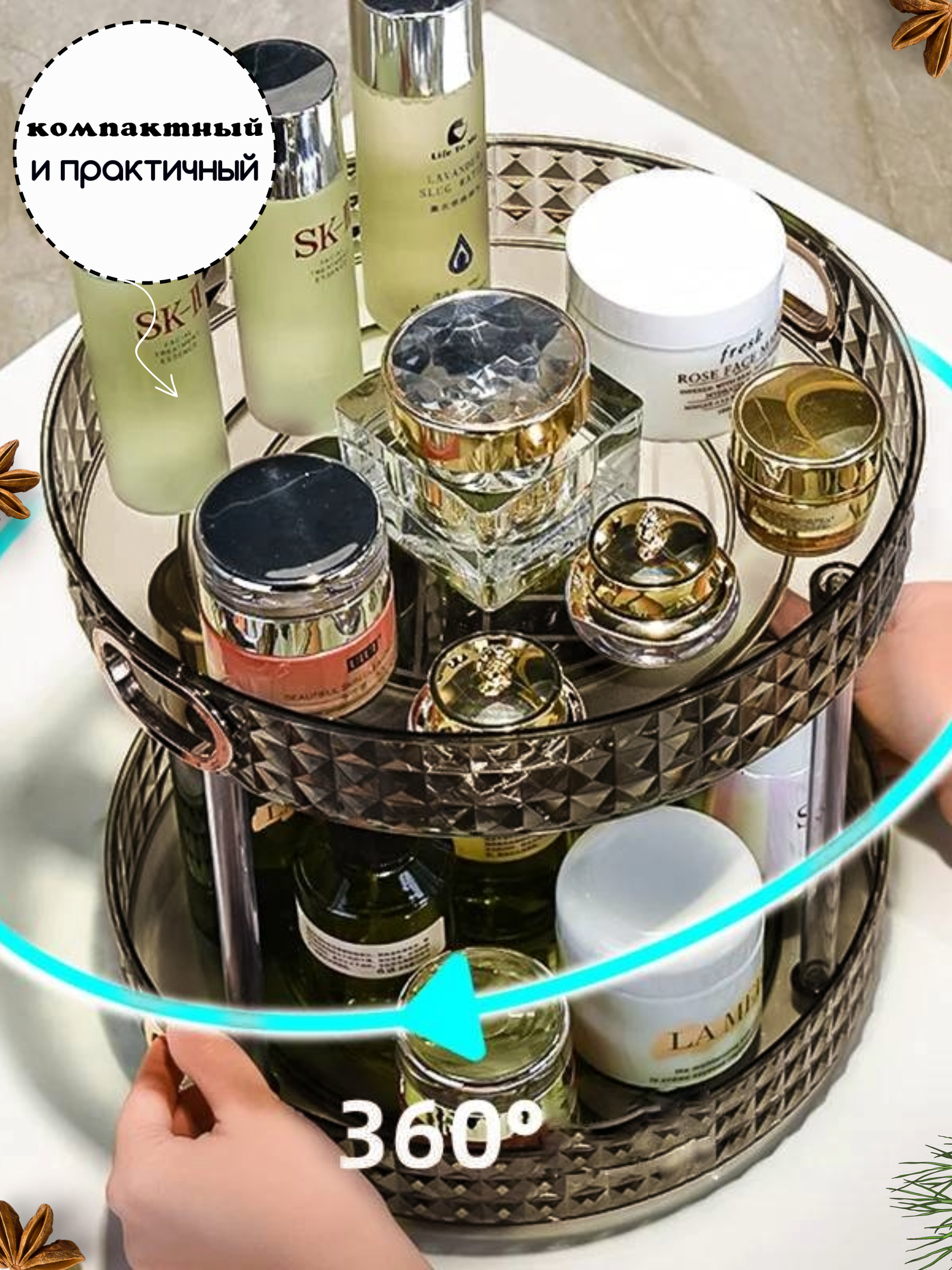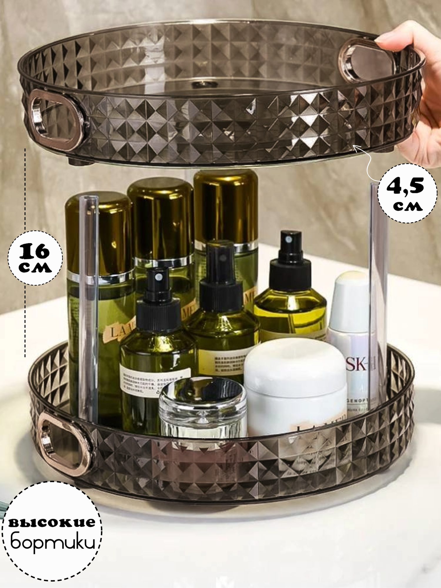 Поднос двухъярусный вращающийся органайзер для специй 27 см черный интересное: