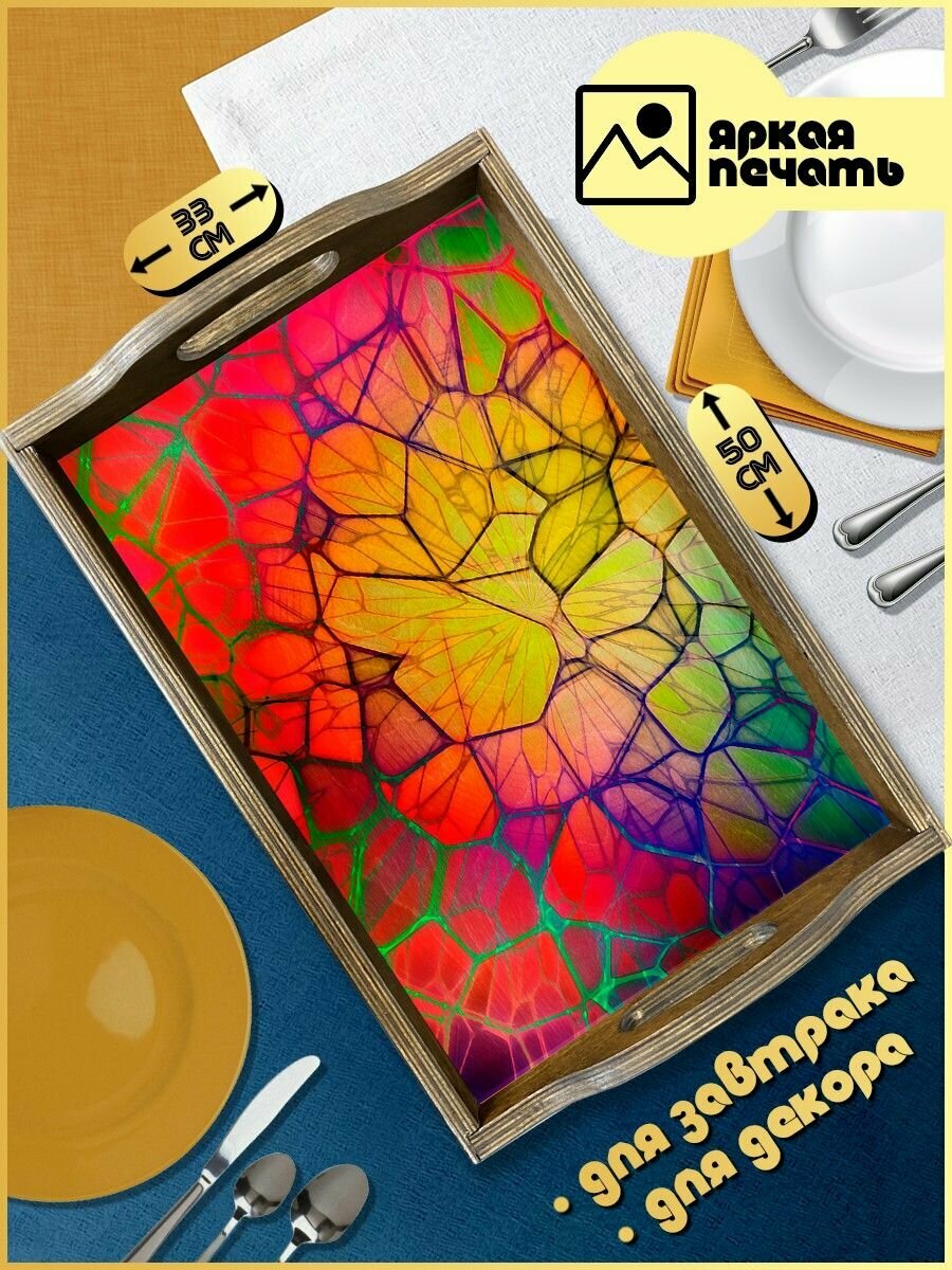 Деревянный поднос на ножках с рисунком Минимализм -1293