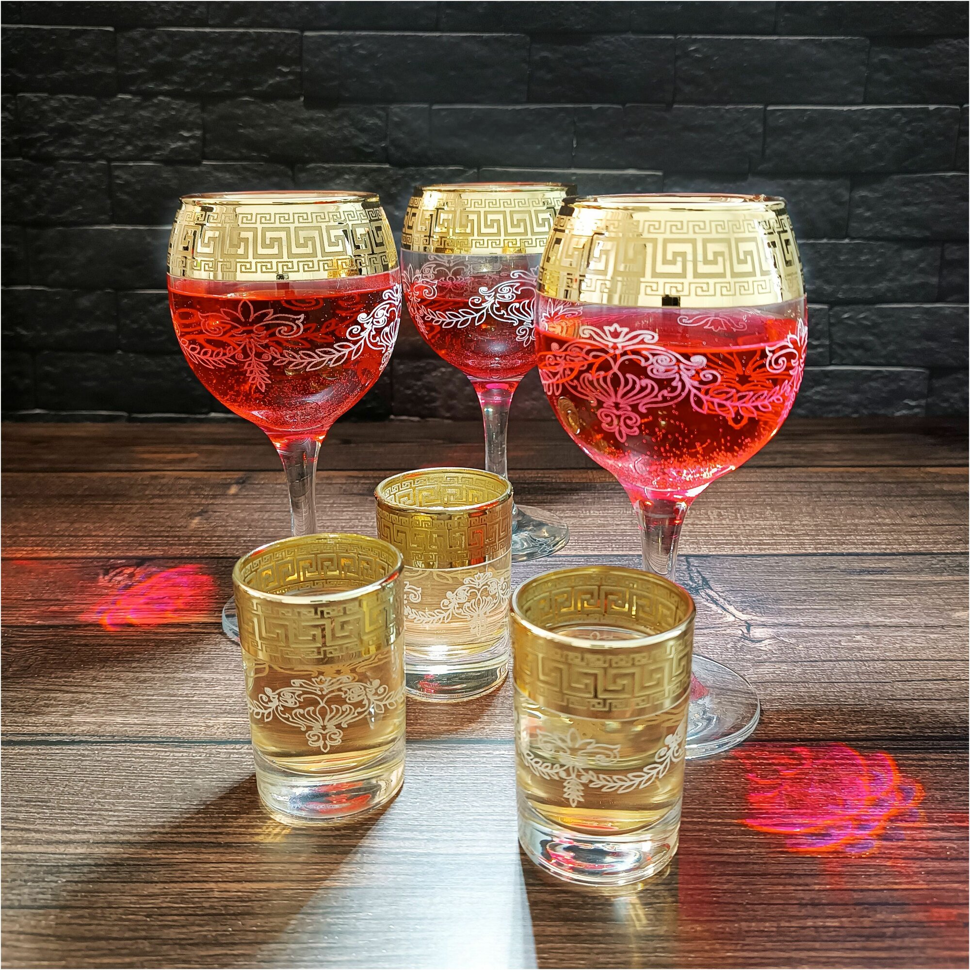 Подарочный набор 12 предметов с алмазной гравировкой PROMSIZ Греческий узор/ Бокалы для вина 260 мл 6 шт. / Стопки для водки 60 мл 6 шт.