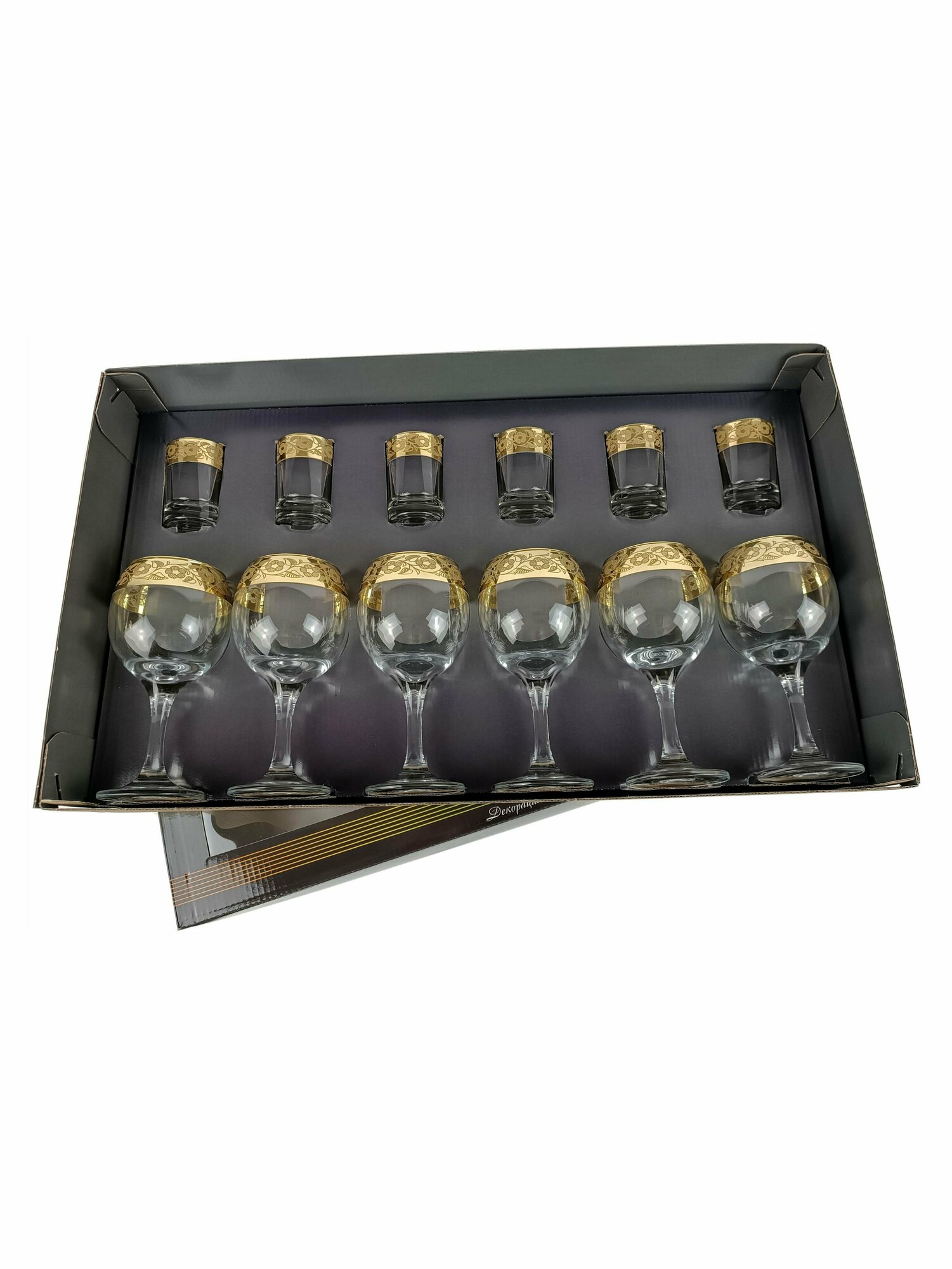 Подарочный набор 12 предметов с алмазной гравировкой PROMSIZ русский узор / Бокалы для вина 260 мл 6 шт. / Стопки для водки 60 мл 6 шт.