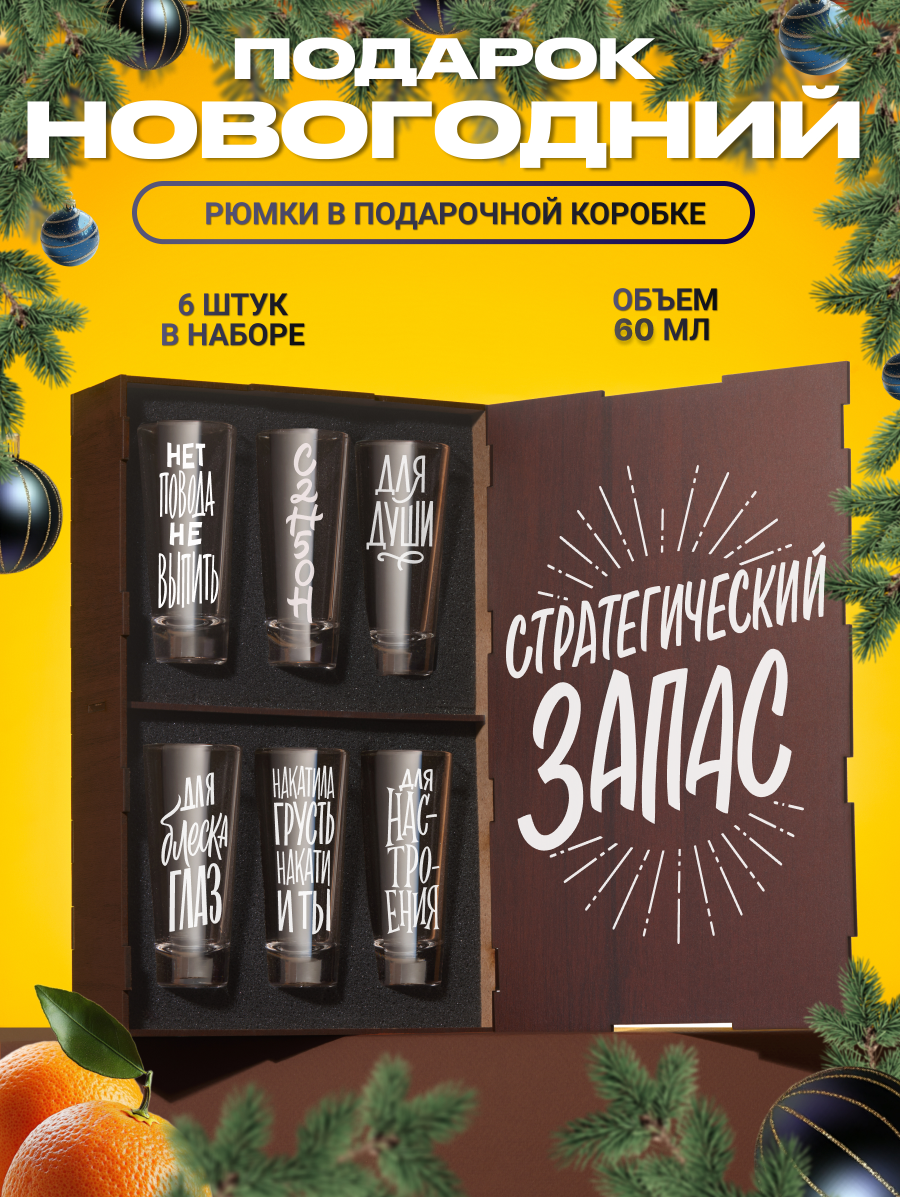 | Комплектация | Стопка для водки с гравировкой 6 шт., Подарочная коробка из МДФ 1 шт. |