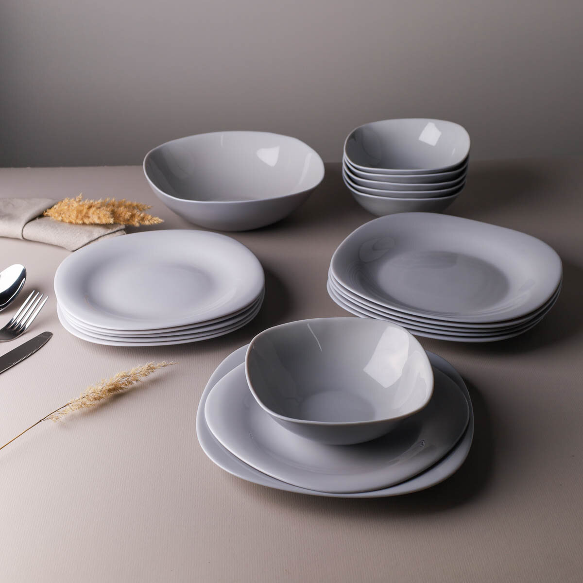 Столовый набор 19 предметов квадратный Серый цвет сервиз 6 персон обеденный интересное: