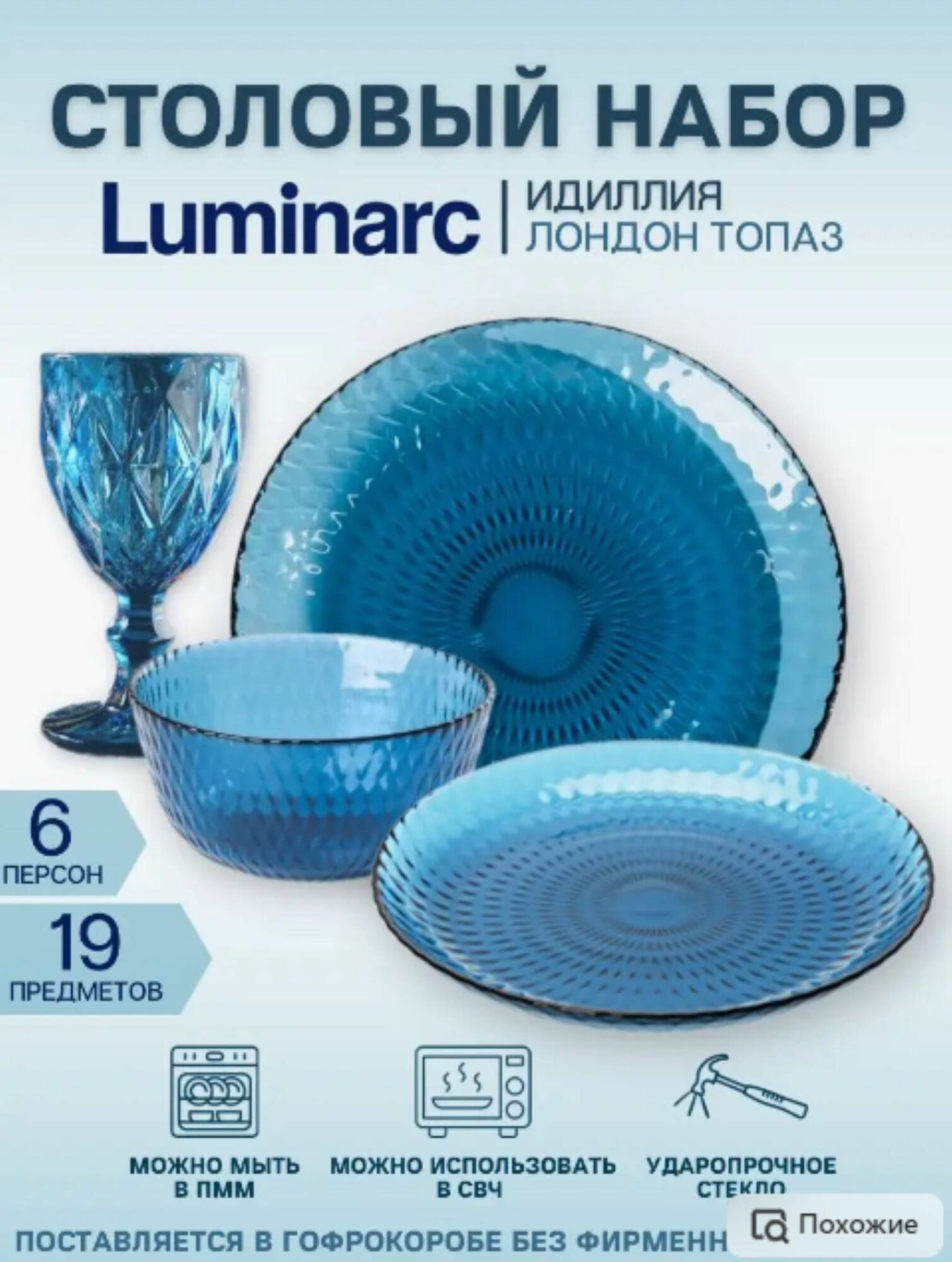 Сервиз столовый /набор посуды Luminarc с бокалами 19 предметов интересное: