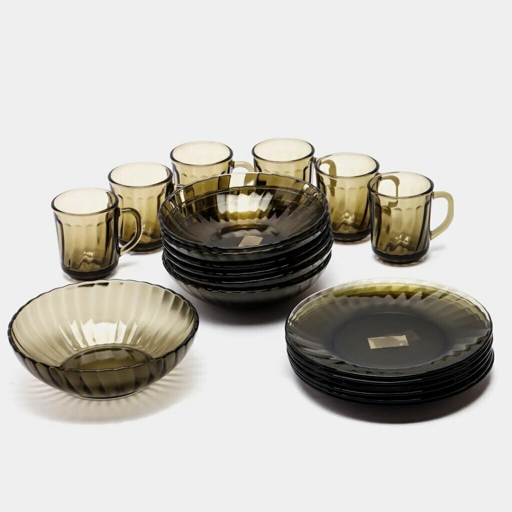 Сервиз столовый стекло, 19 предметов, на 6 персон, Elica, 62104, дымчатый