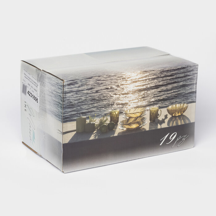 Сервиз столовый стекло, 19 предметов, на 6 персон, Elica, 62104, дымчатый