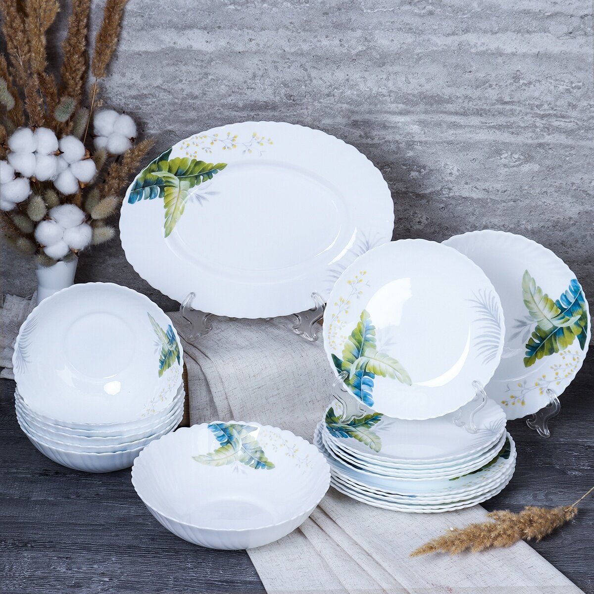 | Комплектация | Большие глубокие тарелки 650 мл (6 шт.); Плоские обеденные тарелки 21,5 см (6 шт.); Плоские обеденные тарелки 19 см (6 шт.); Большой салатник 1,1 л (1 шт); Блюдо для сервировки 30х22 см (1 шт.) |
