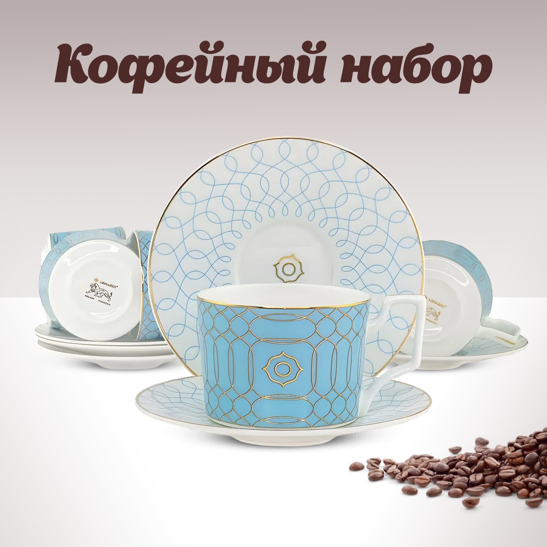 Кофейный набор на 6 персон 12 предметов Lenardi Тиффани 120мл, костяной фарфор интересное: