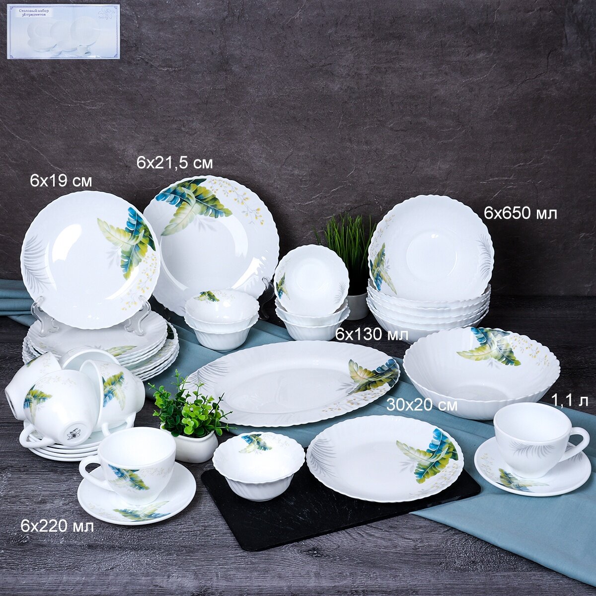 Столовый набор сервиз Папоротник 38 предметов на 6 персон интересное: