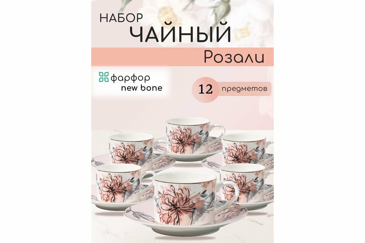 Чайный набор Jewel Розали, 12 предметов (нью бон) интересное: