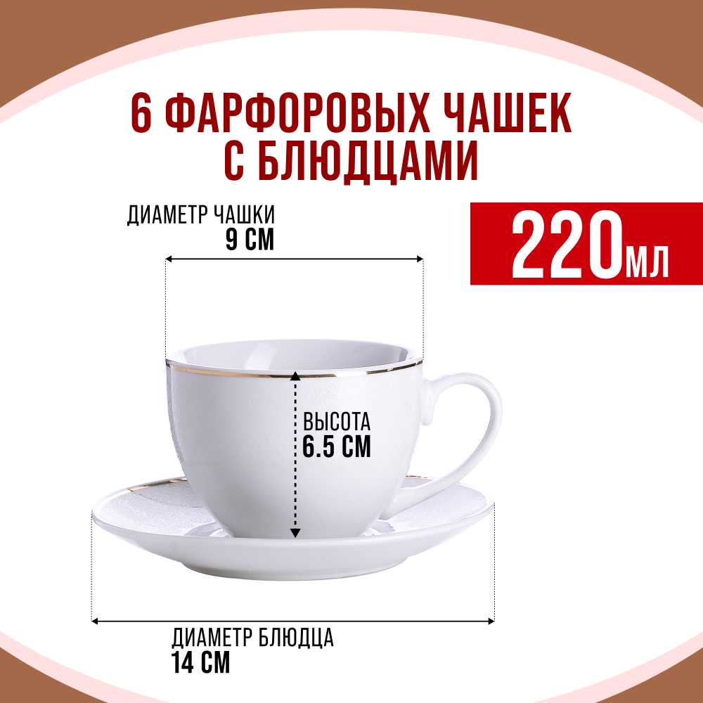Чайный сервиз на 6 персон 12 предметов 200мл фарфор премиум 30530
