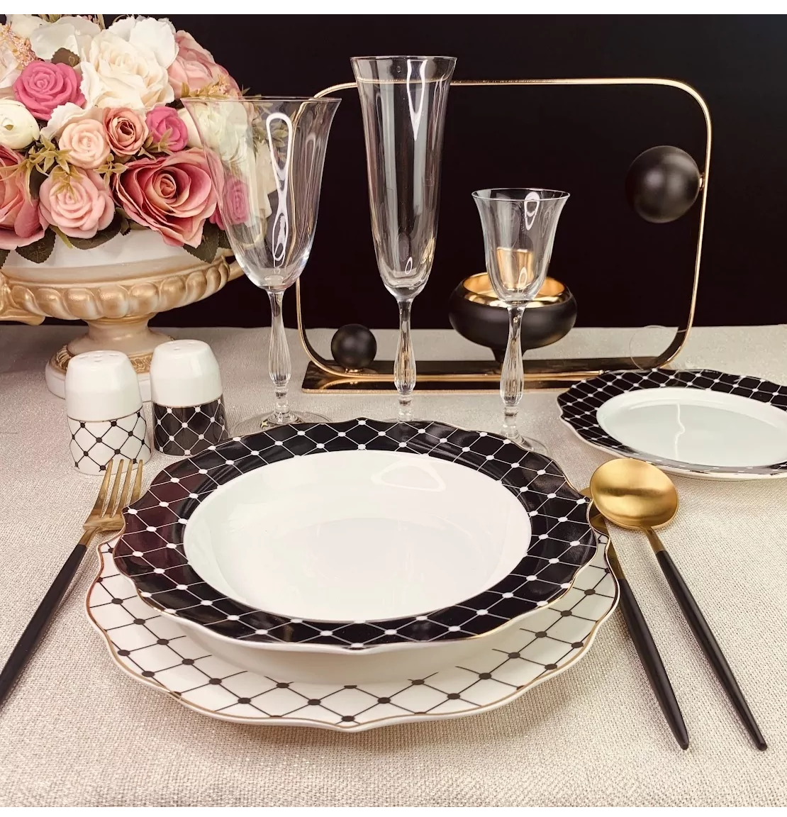 | Состав набора | перечница, солонка, 18 тарелок |