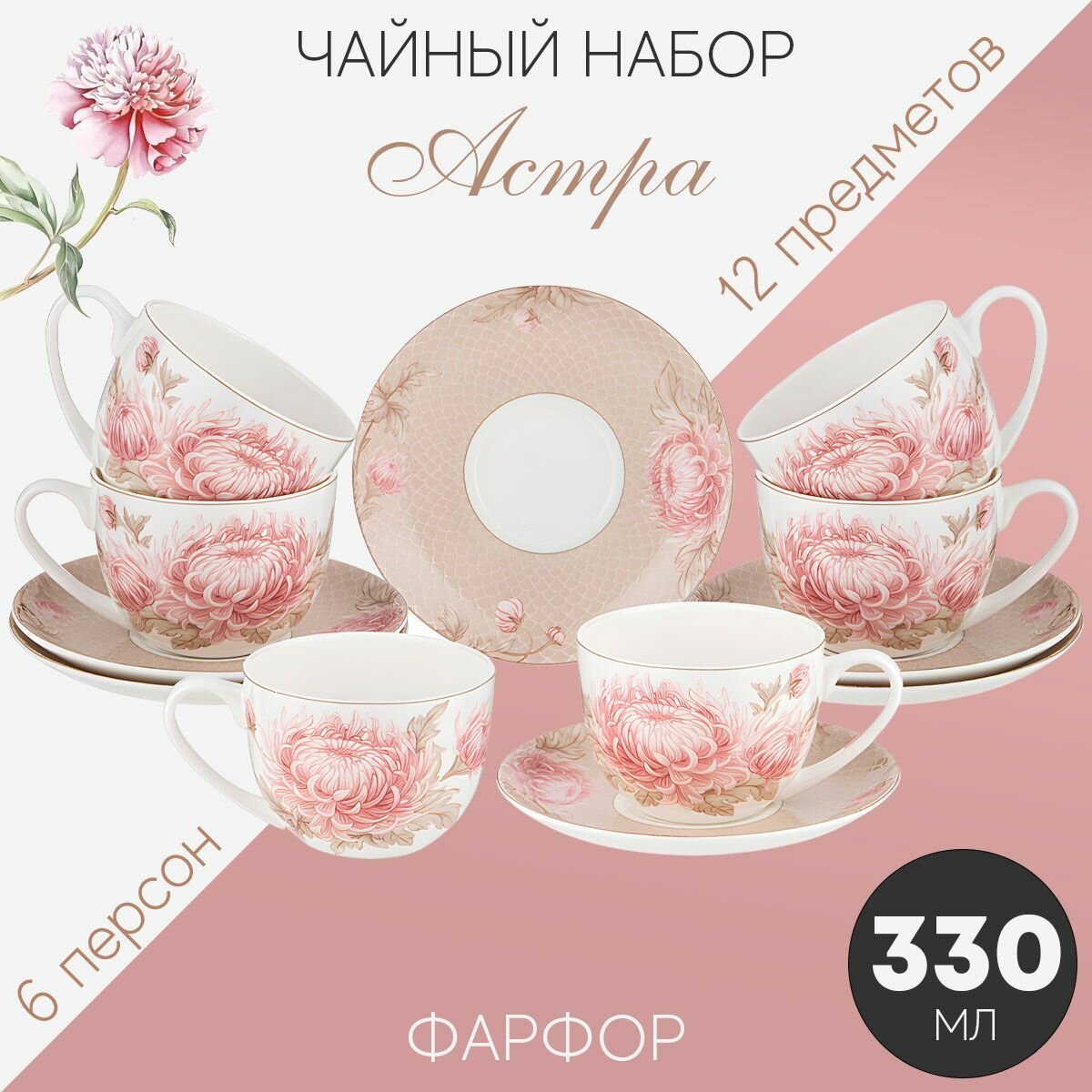 Купить Чайный набор 415-2161 lefard астра на 6 персон 12 предметов 330 мл