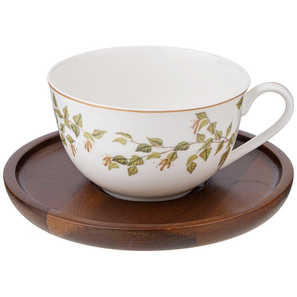 Чайная пара Lefard "Березки" на деревянной подставке 290 мл
