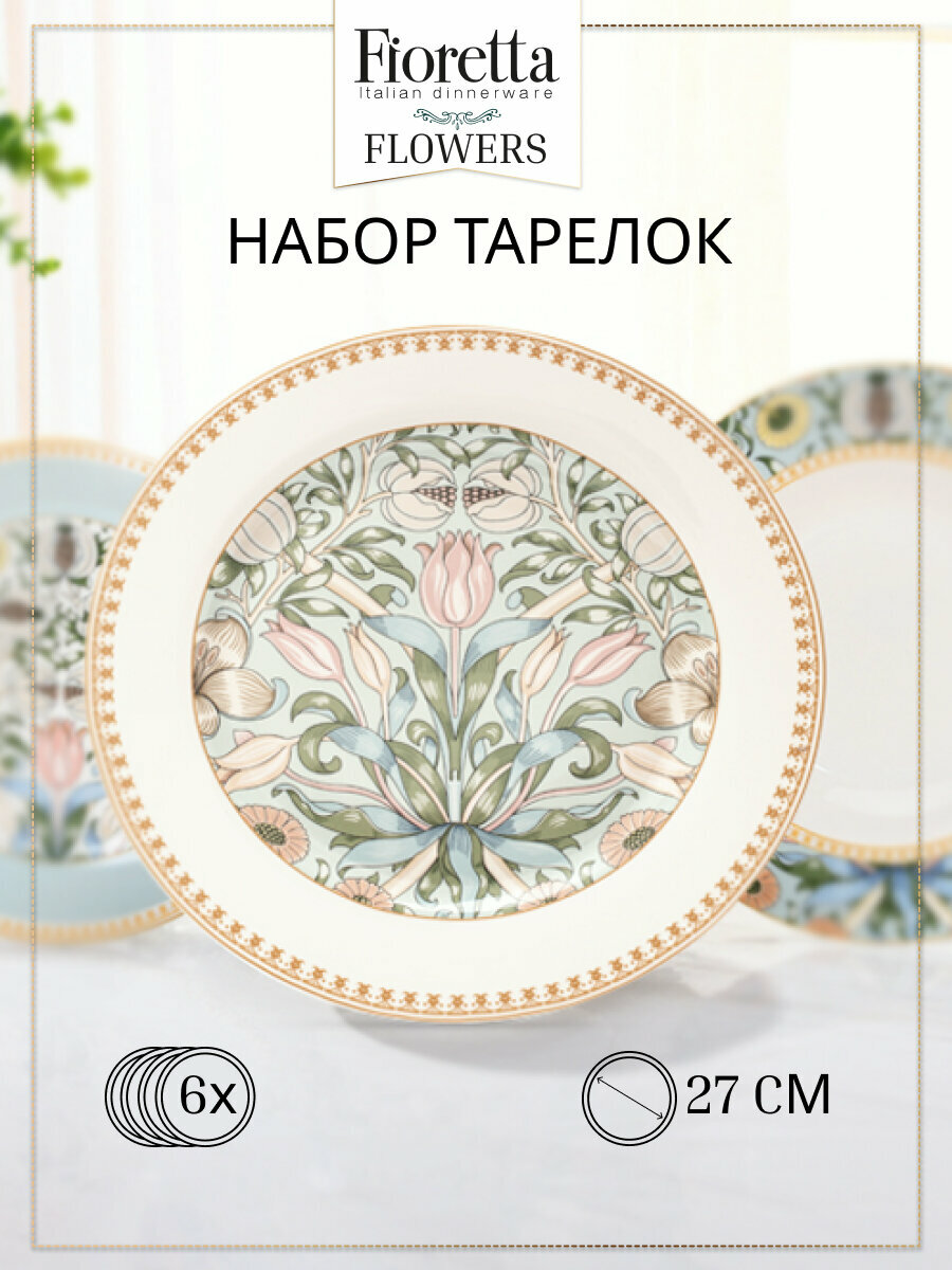 Набор обеденных тарелок FLOWERS 6шт 27см интересное:
