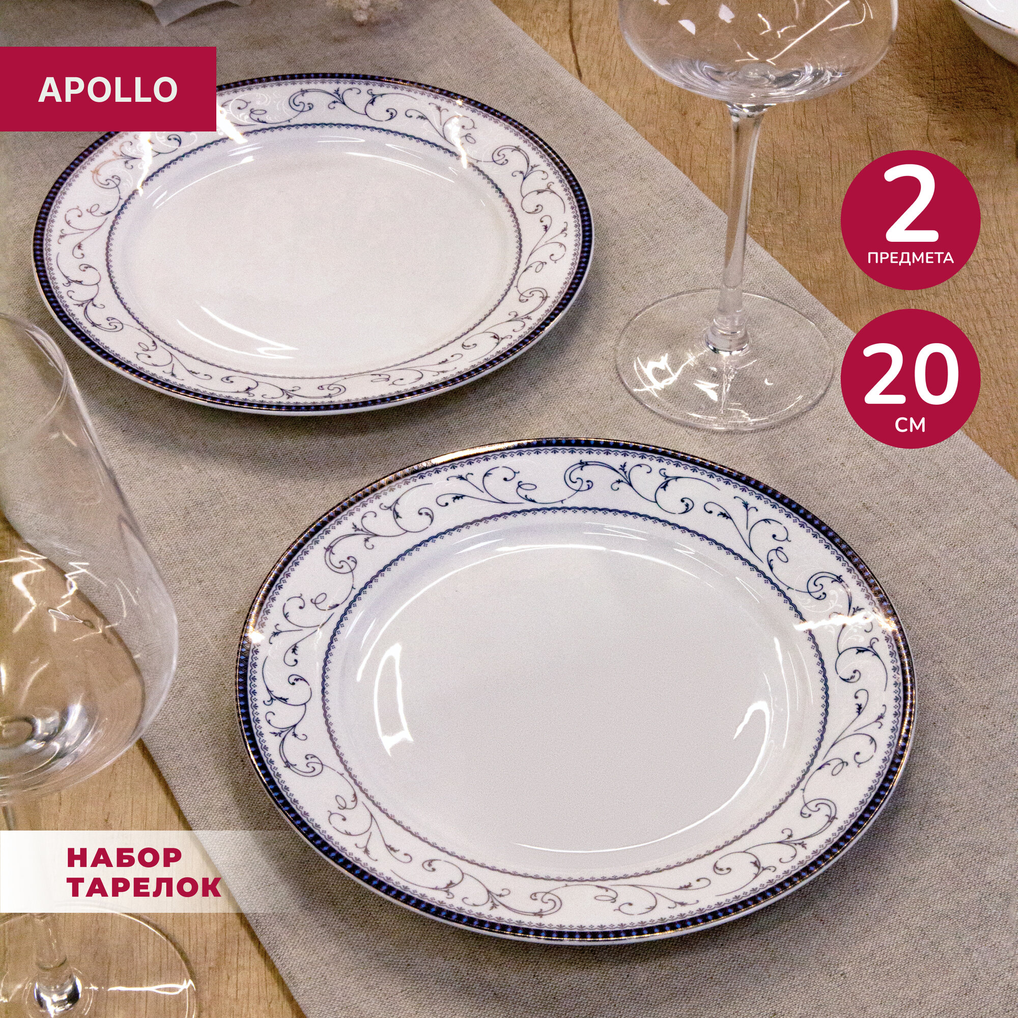 Тарелка обеденная фарфоровая Apollo "Luxor", 2 предмета в наборе, диаметр 20 см интересное:
