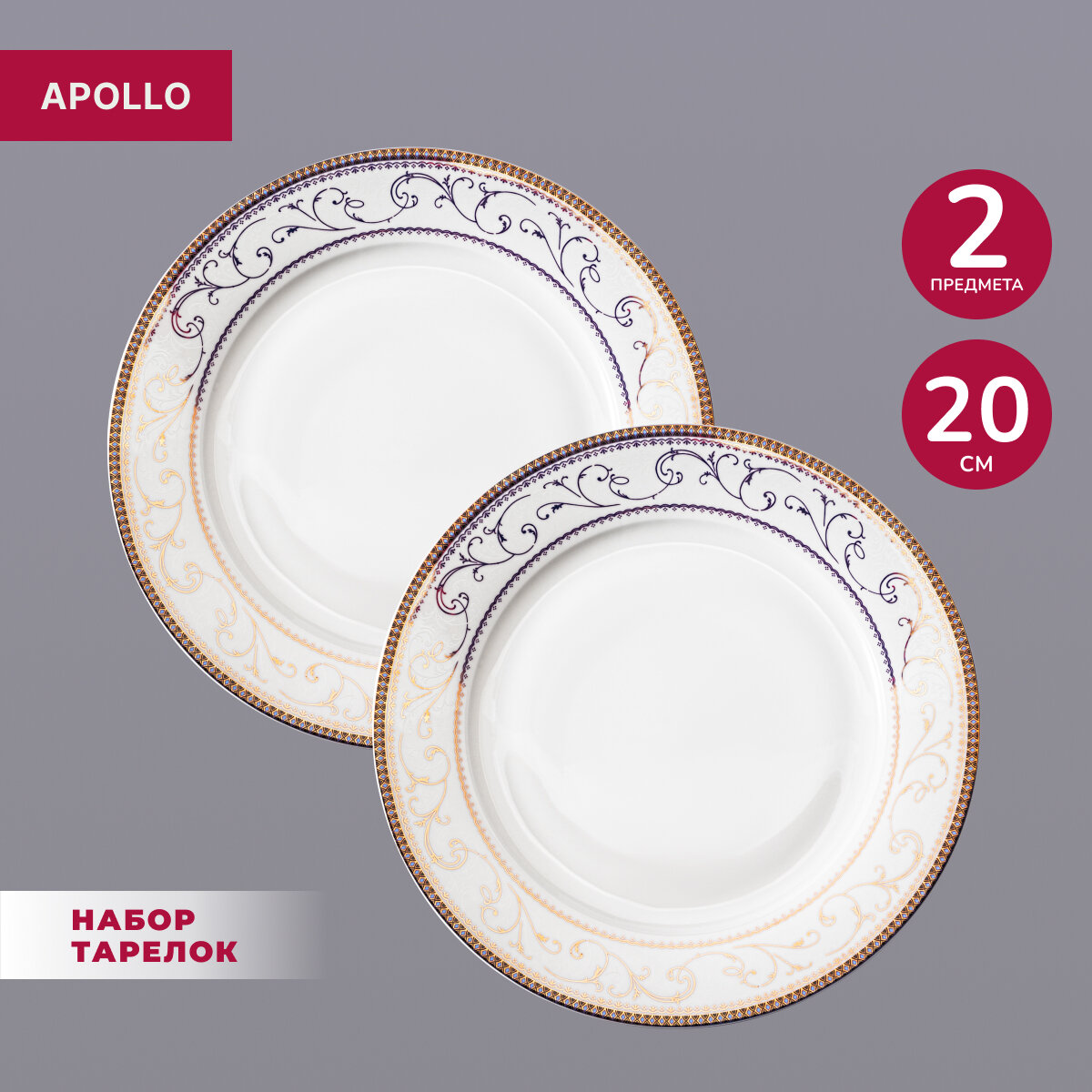 Купить Тарелка обеденная фарфоровая Apollo "Luxor", 2 предмета в наборе, диаметр 20 см