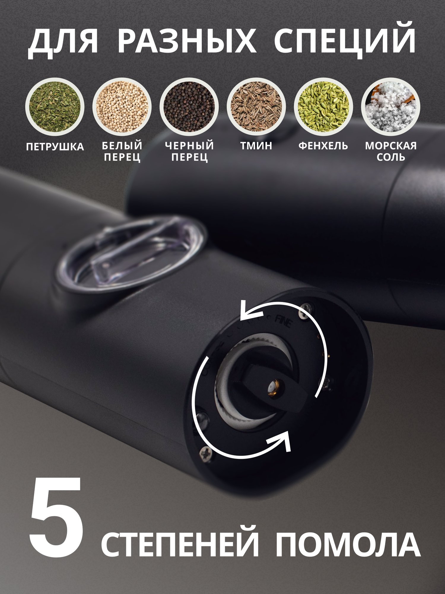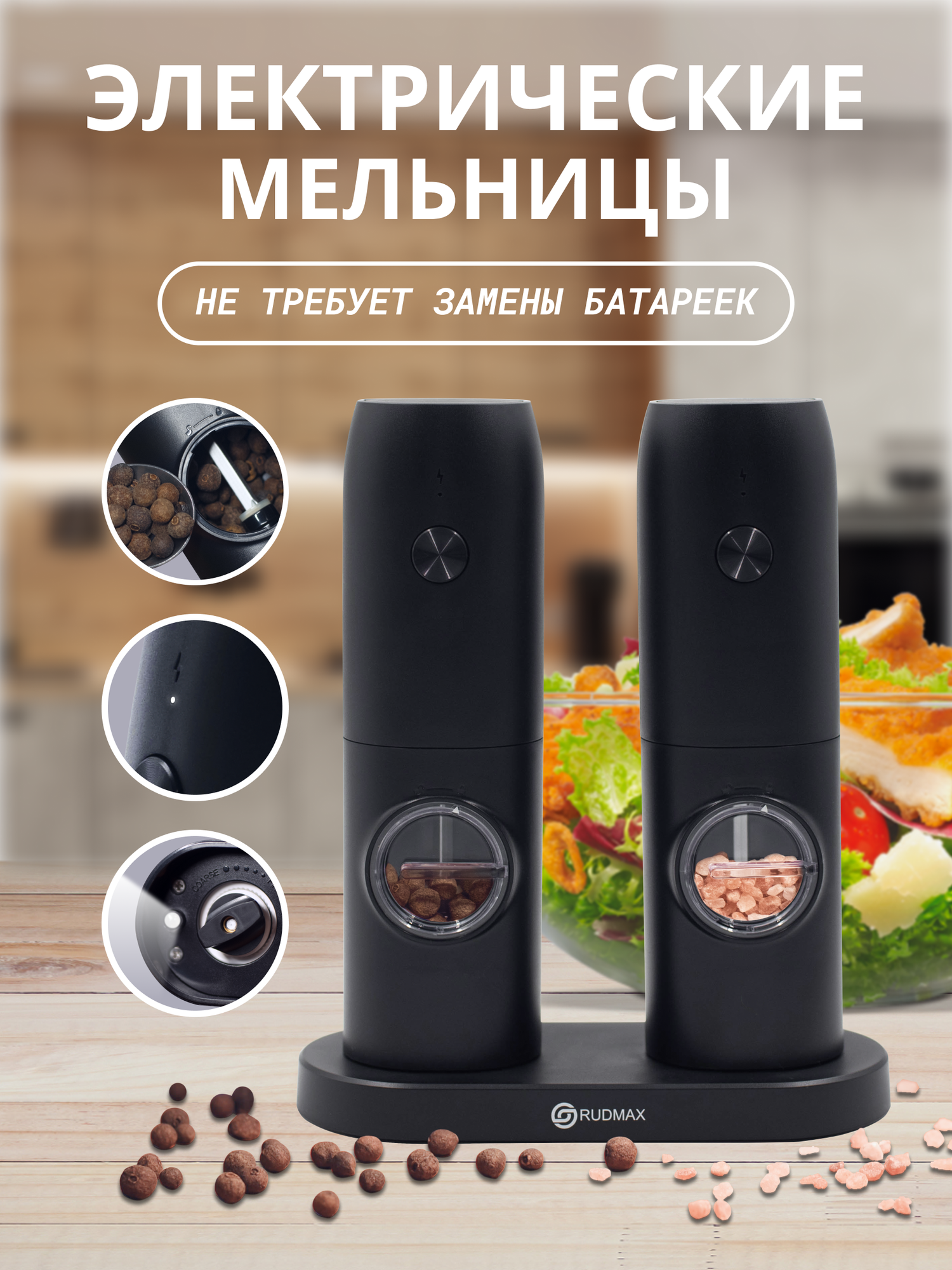 Набор электромельниц для специй Rudmax RM-02, черный интересное: