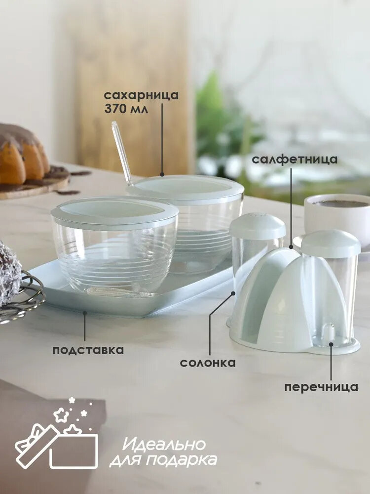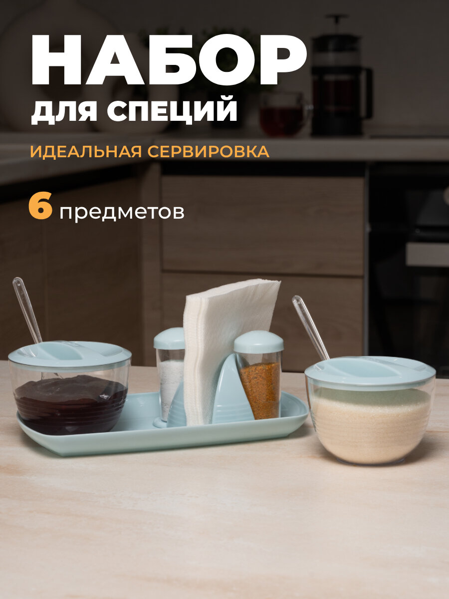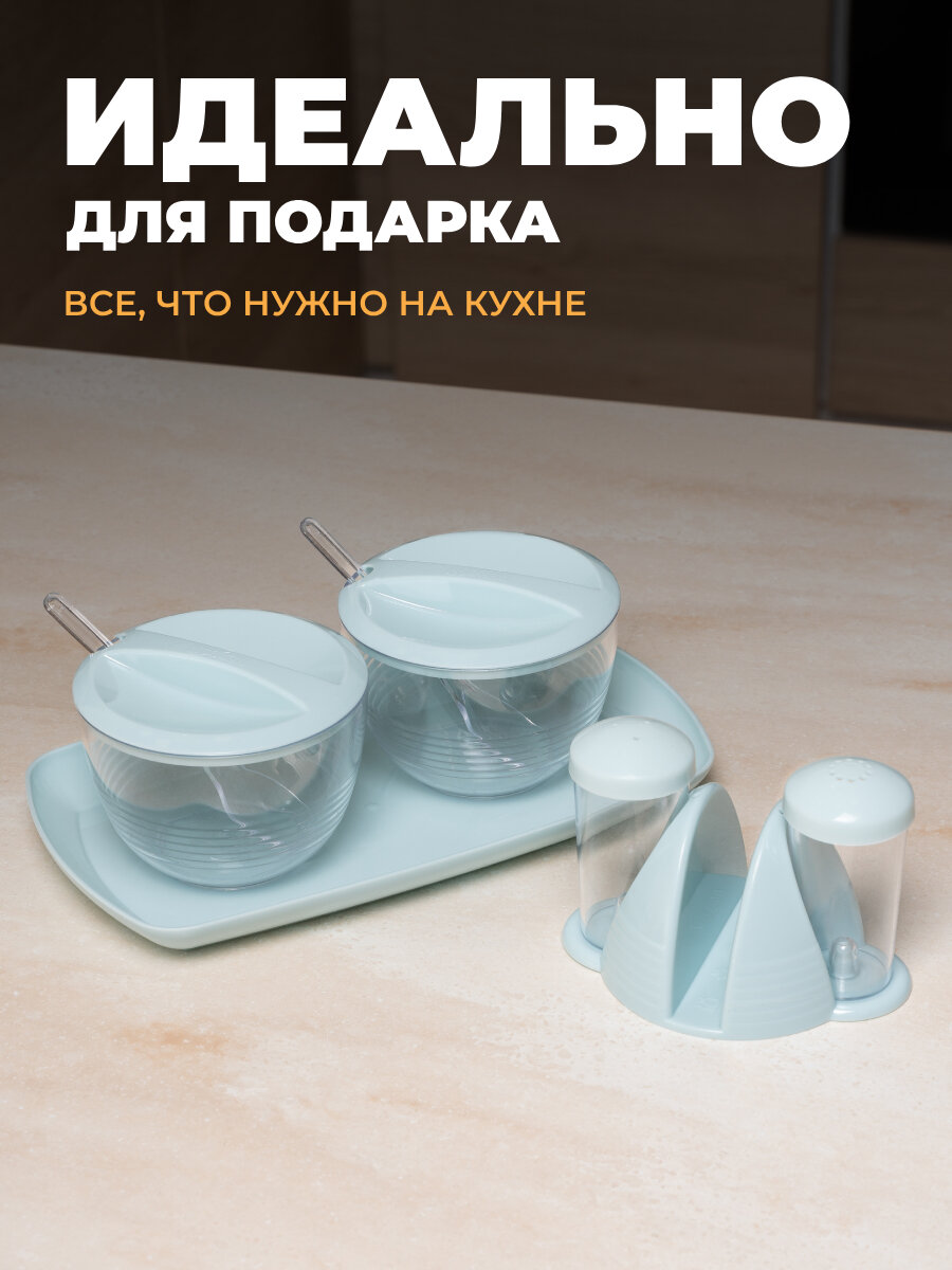 Набор для специй, сахарница, солонка, салфетница-голубая интересное: