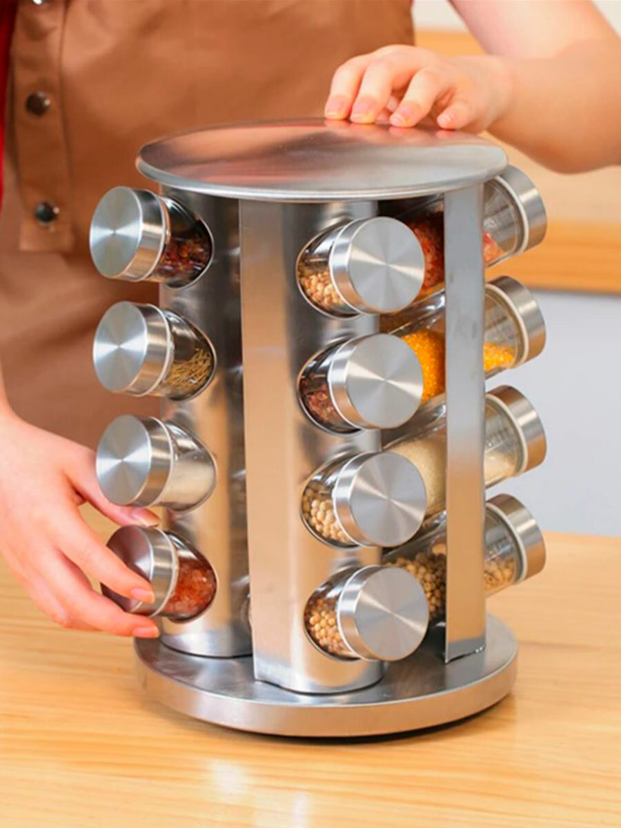 Набор баночек для специй, банки для хранения приправ на вращающейся подставке 16 шт
