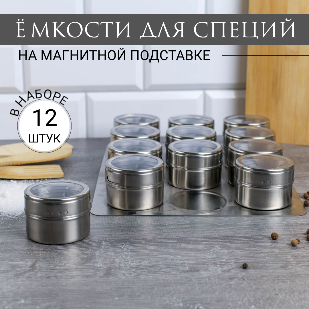 Купить Набор для специй на магнитной подставке 12 штук / баночки для специй