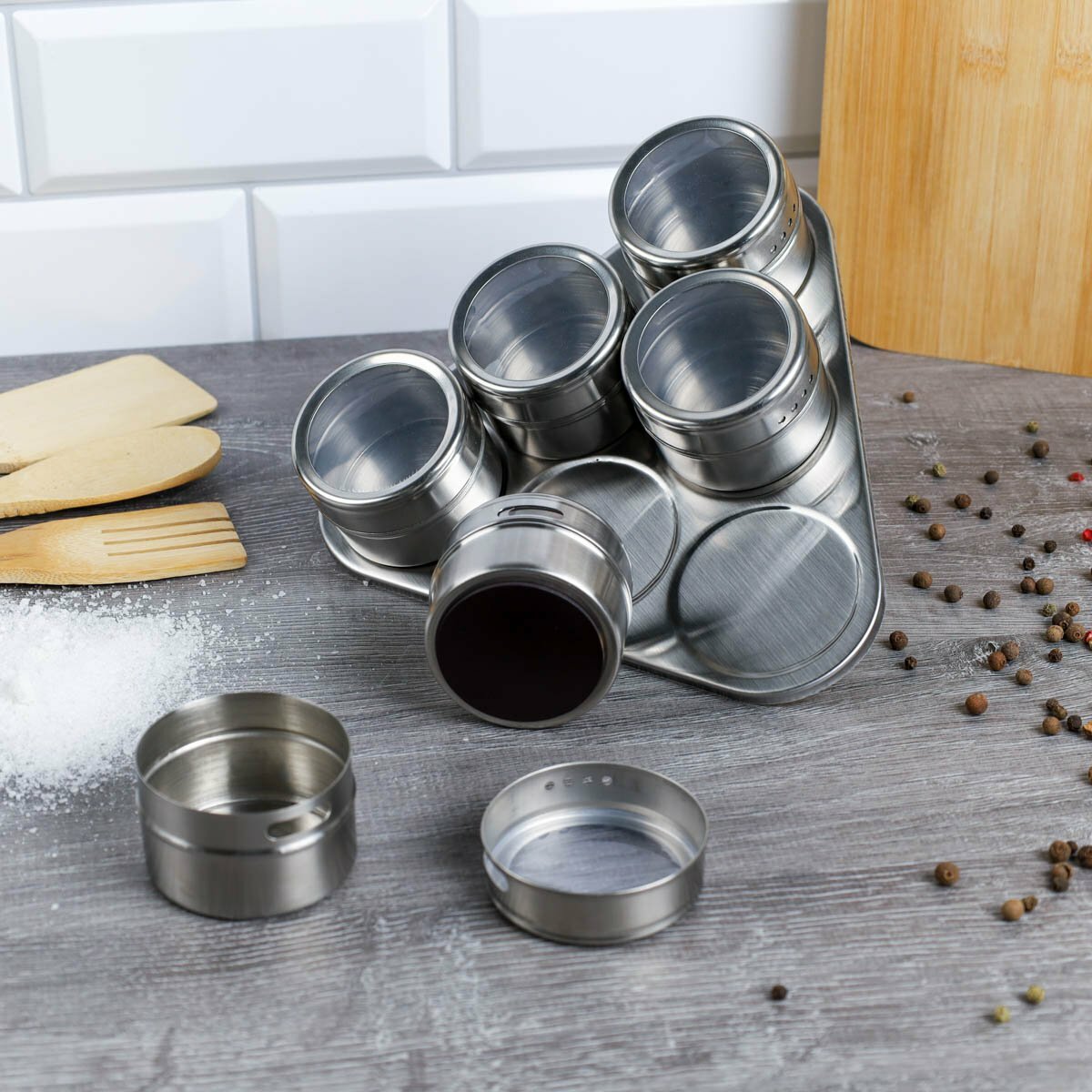 Купить Набор для специй на магнитной подставке 6 штук / баночки для специй