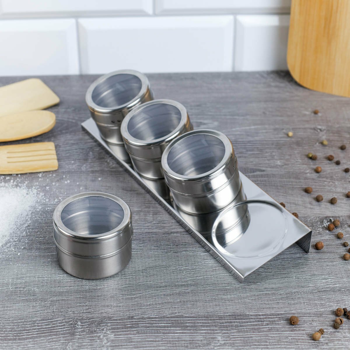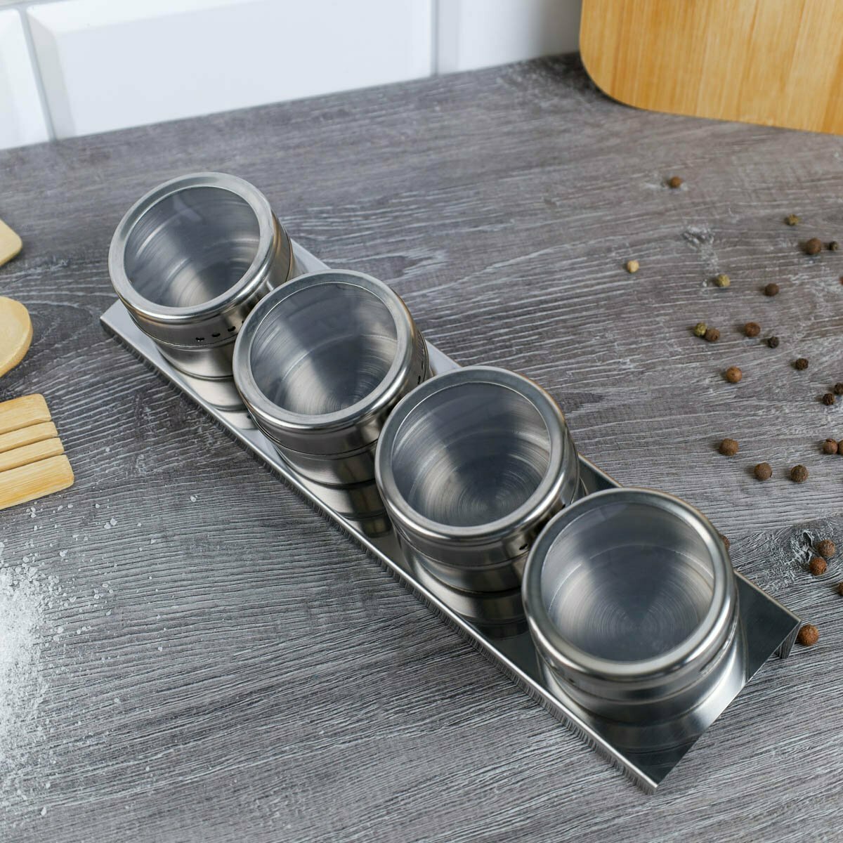 Купить Набор для специй на магнитной подставке 4 штуки / баночки для специй
