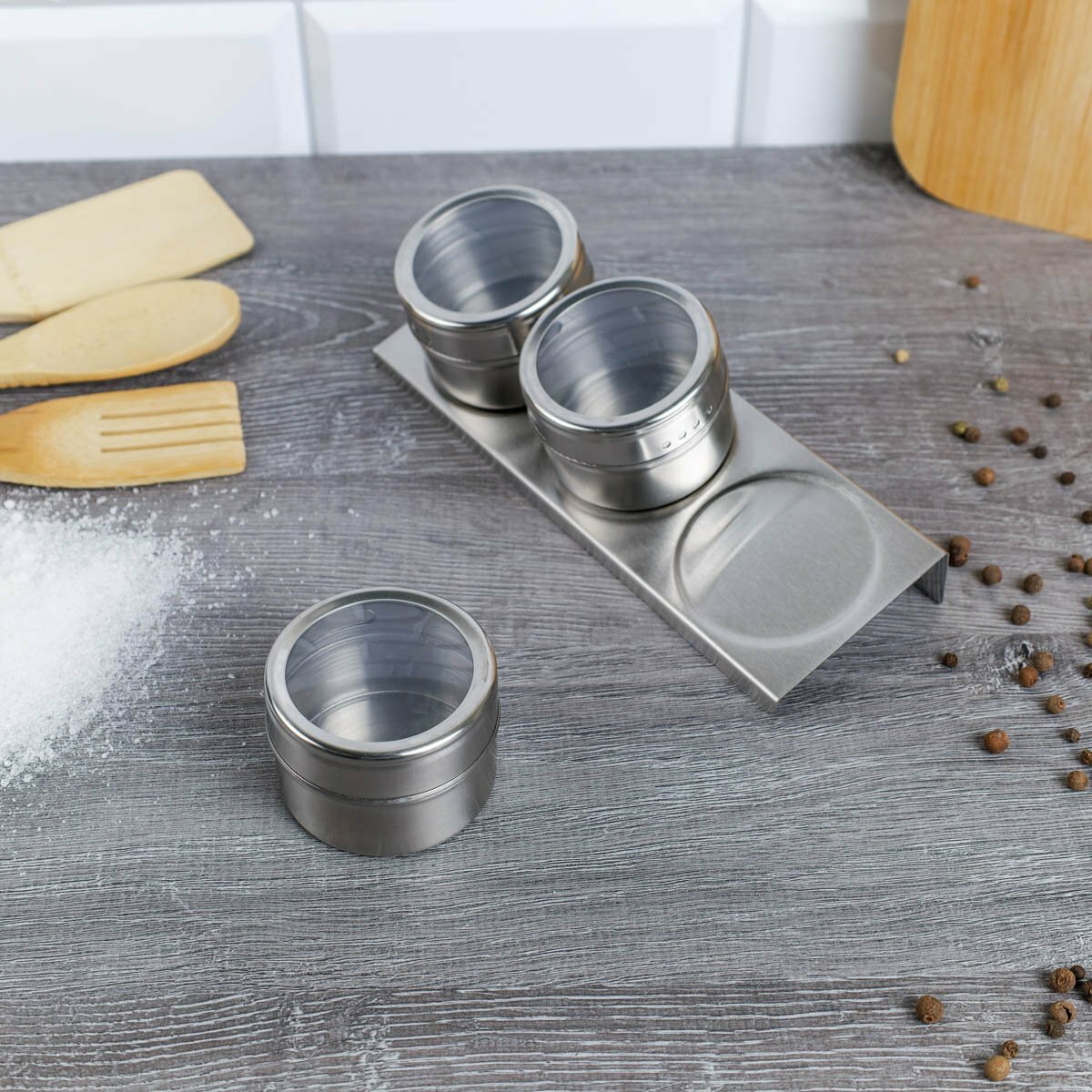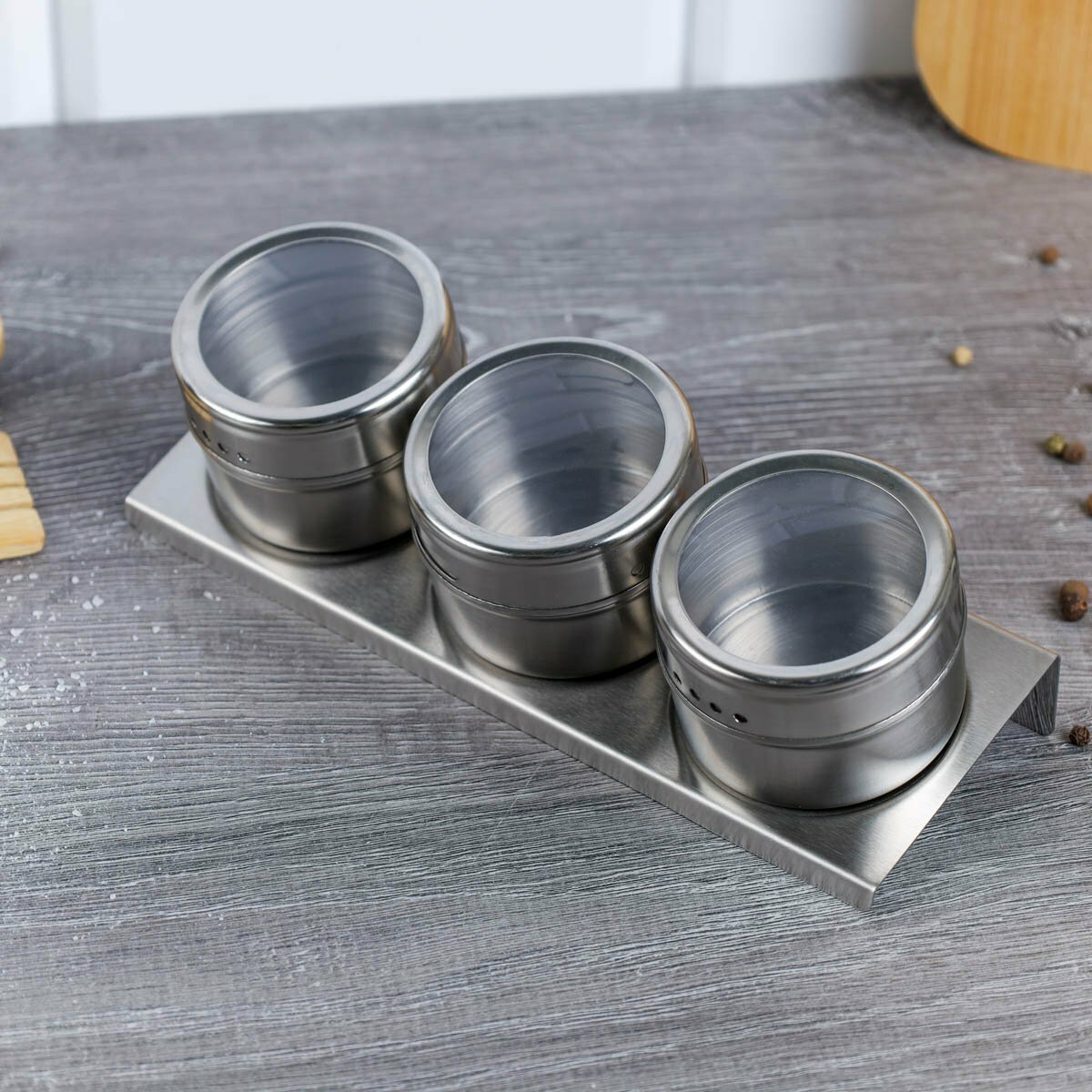 Купить Набор для специй на магнитной подставки 3 штуки / баночки для специй