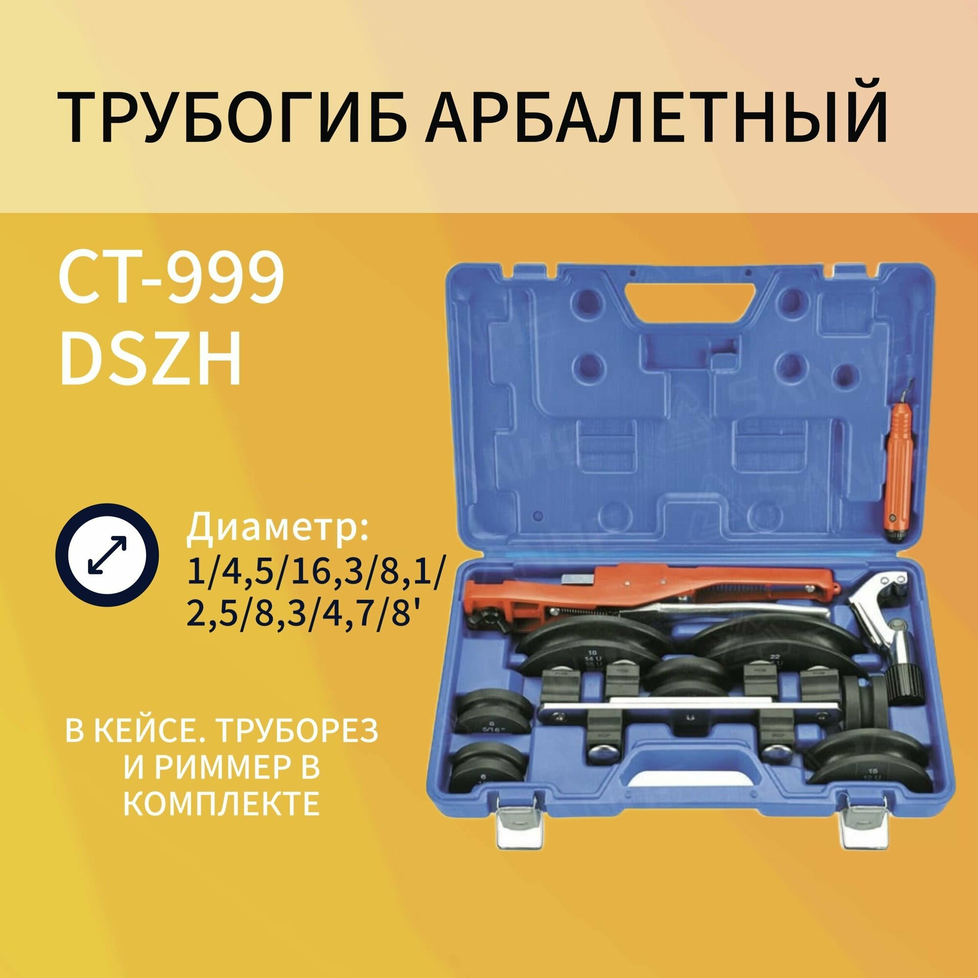 Трубогиб арбалетный DSZH CT-999 (1/4"; 5/16"; 3/8"; 1/2"; 5/8"; 3/4"; 7/8")(в кейсе с труборезом и риммером) интересное: