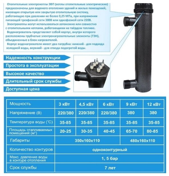 Электрокотел ЭВП 12кВт эконом "Электромаш", 220/380 В, белый до 110м2 интересное: