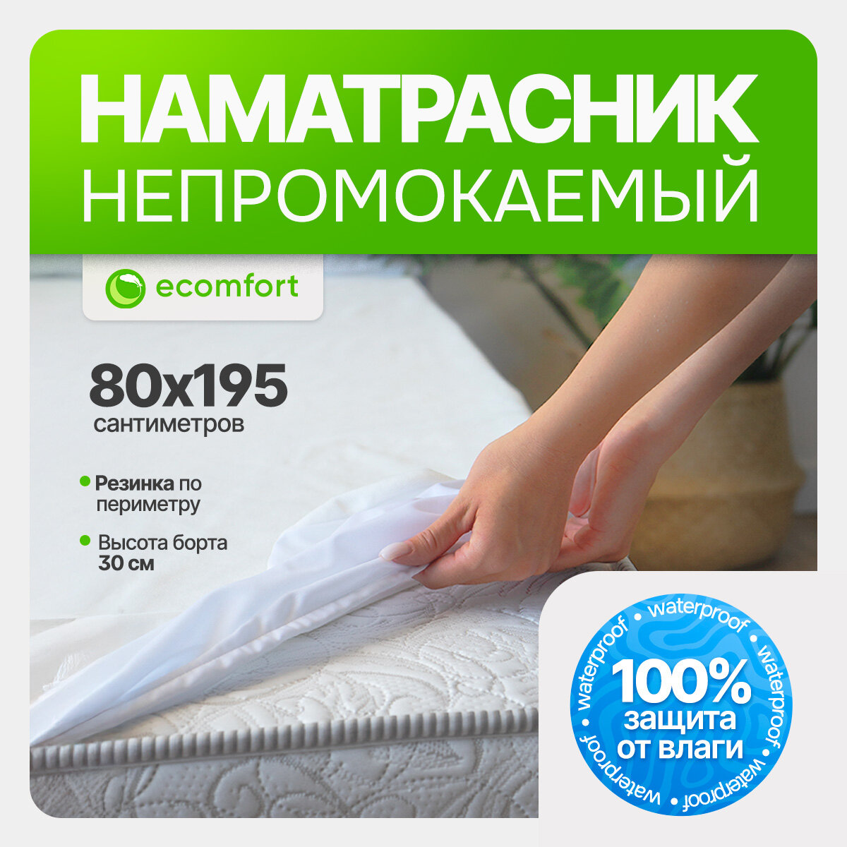Купить Наматрасник 80х195 непромокаемый на резинке хлопковый белый мягкий