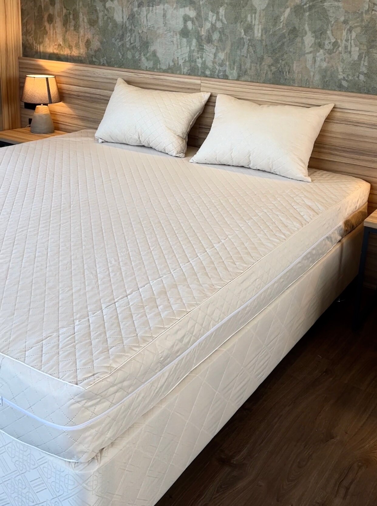 Наматрасник стёганный Асика / Наполнитель овечья шерсть / С резинками по углам - 120х200 см / Чехол на матрас