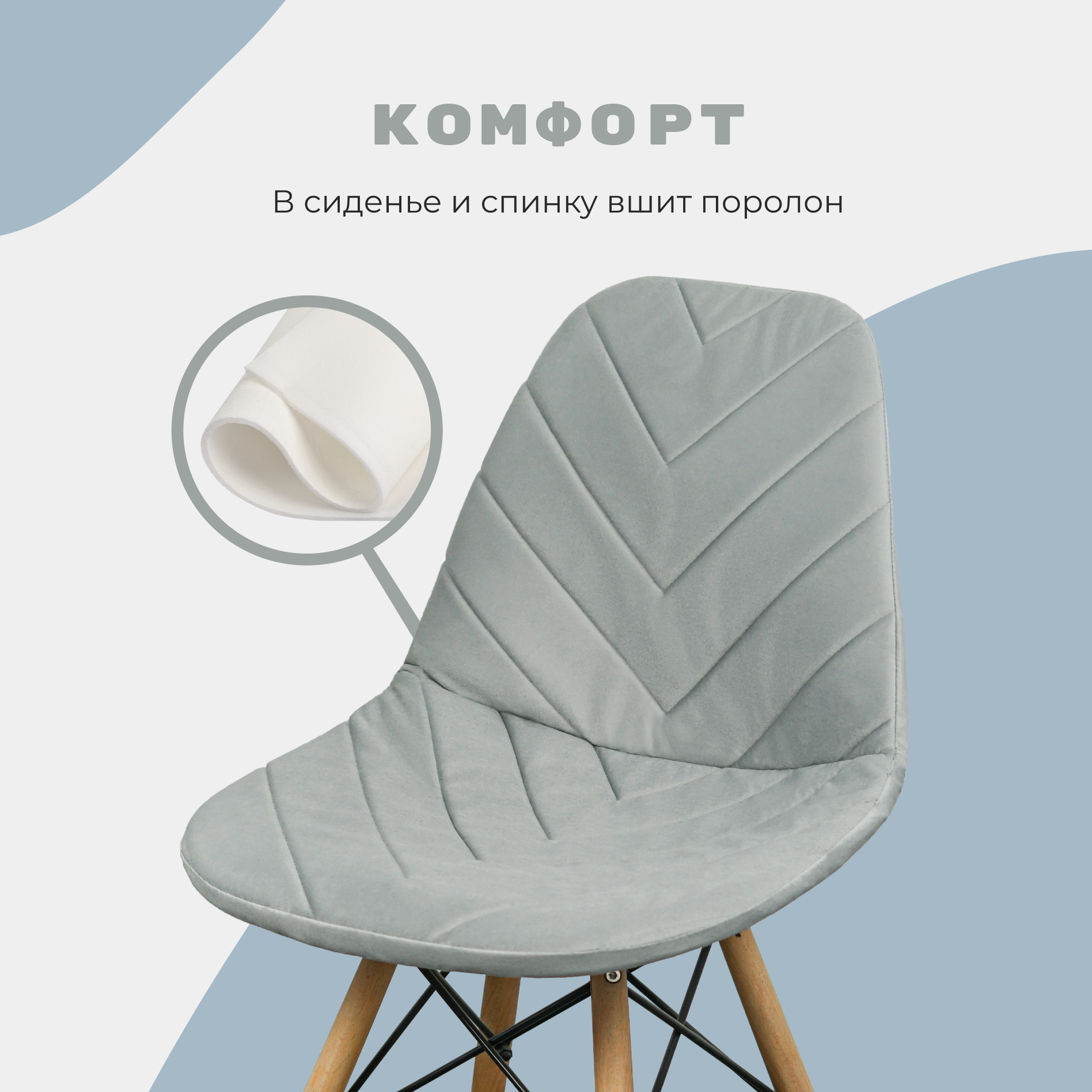 СохранитьЧехол на стул со спинкой Eames DSW из велюра, светло-серый, 40х46см интересное: