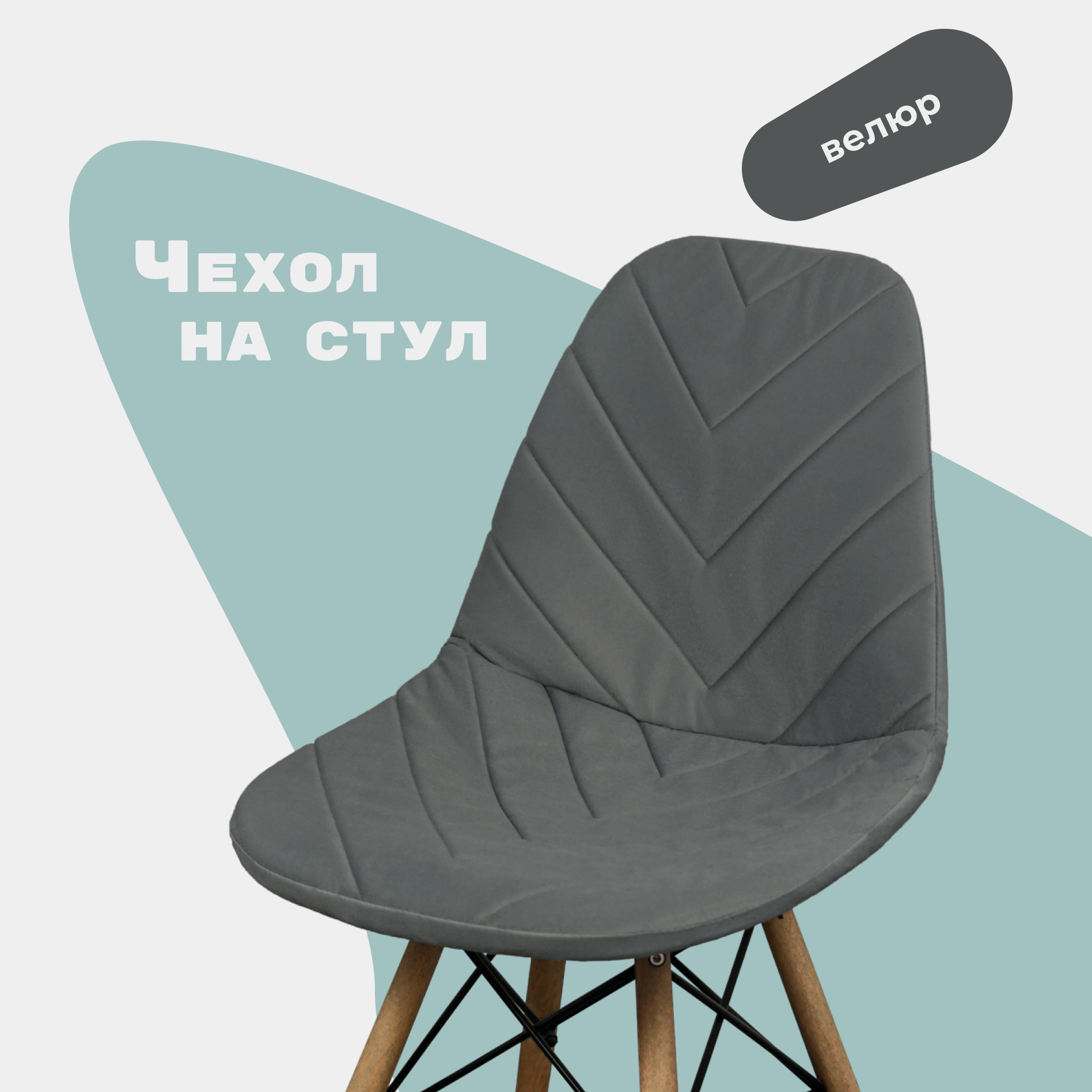Купить Чехол на стул со спинкой Eames DSW из велюра, темно-серый, 40х46см