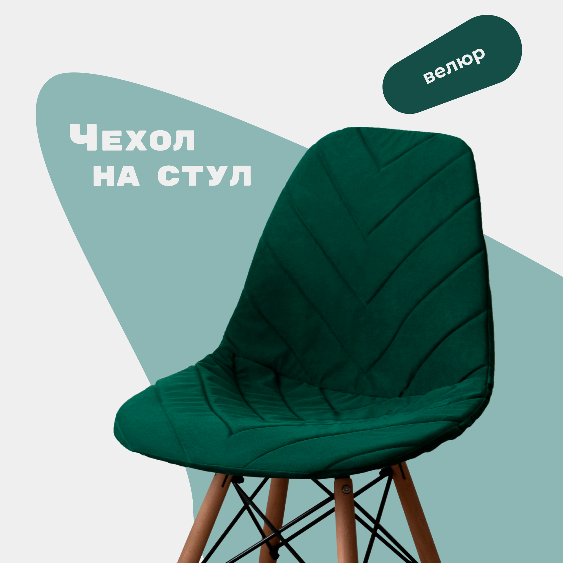 Купить Чехол на стул со спинкой Eames DSW из велюра, изумрудно-зеленый, 40х46см