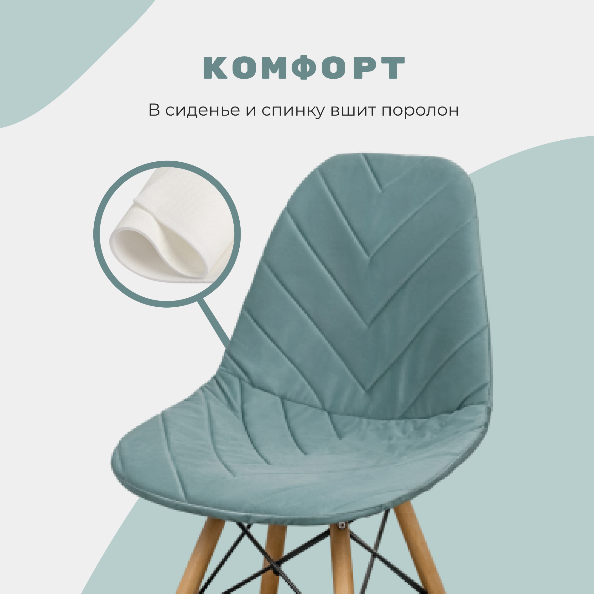 СохранитьЧехол на стул со спинкой Eames DSW из велюра, пыльная мята, 40х46см интересное: