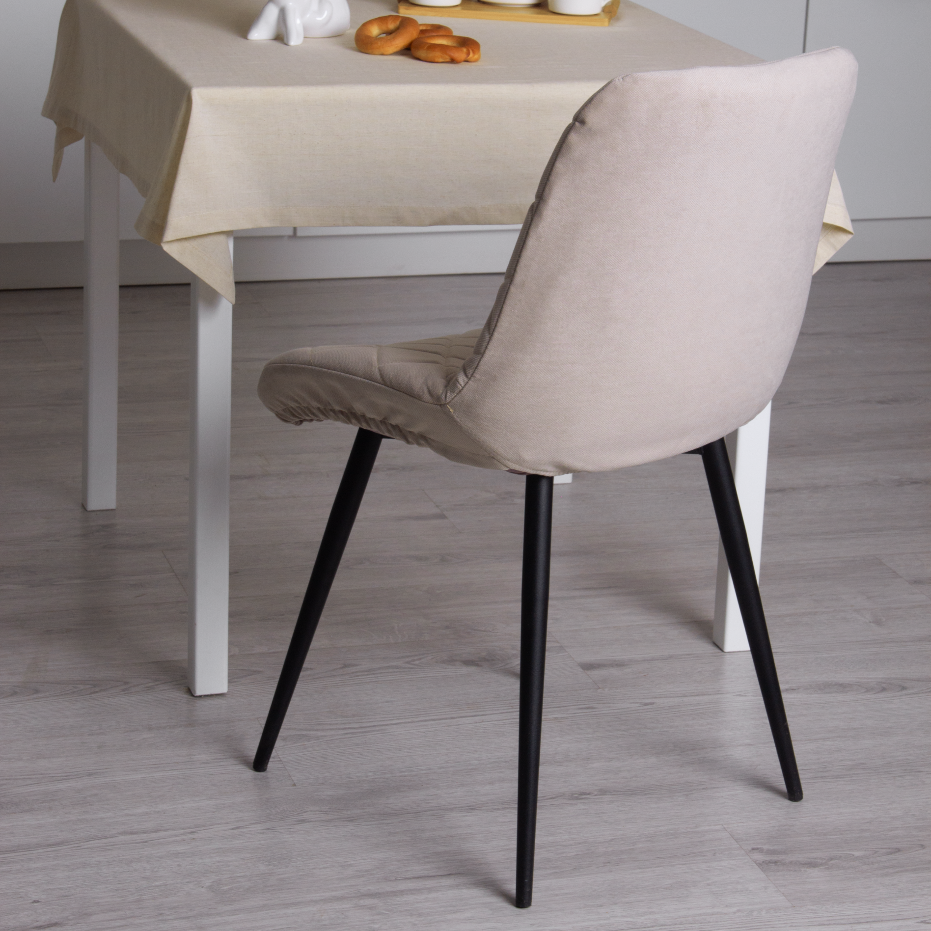 Купить Чехол на стул Румба из микровелюра, бежевый, прострочка 06