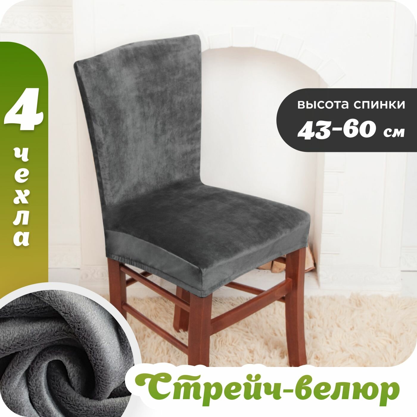 Чехол на стул со спинкой велюр Графит 4 штуки интересное: