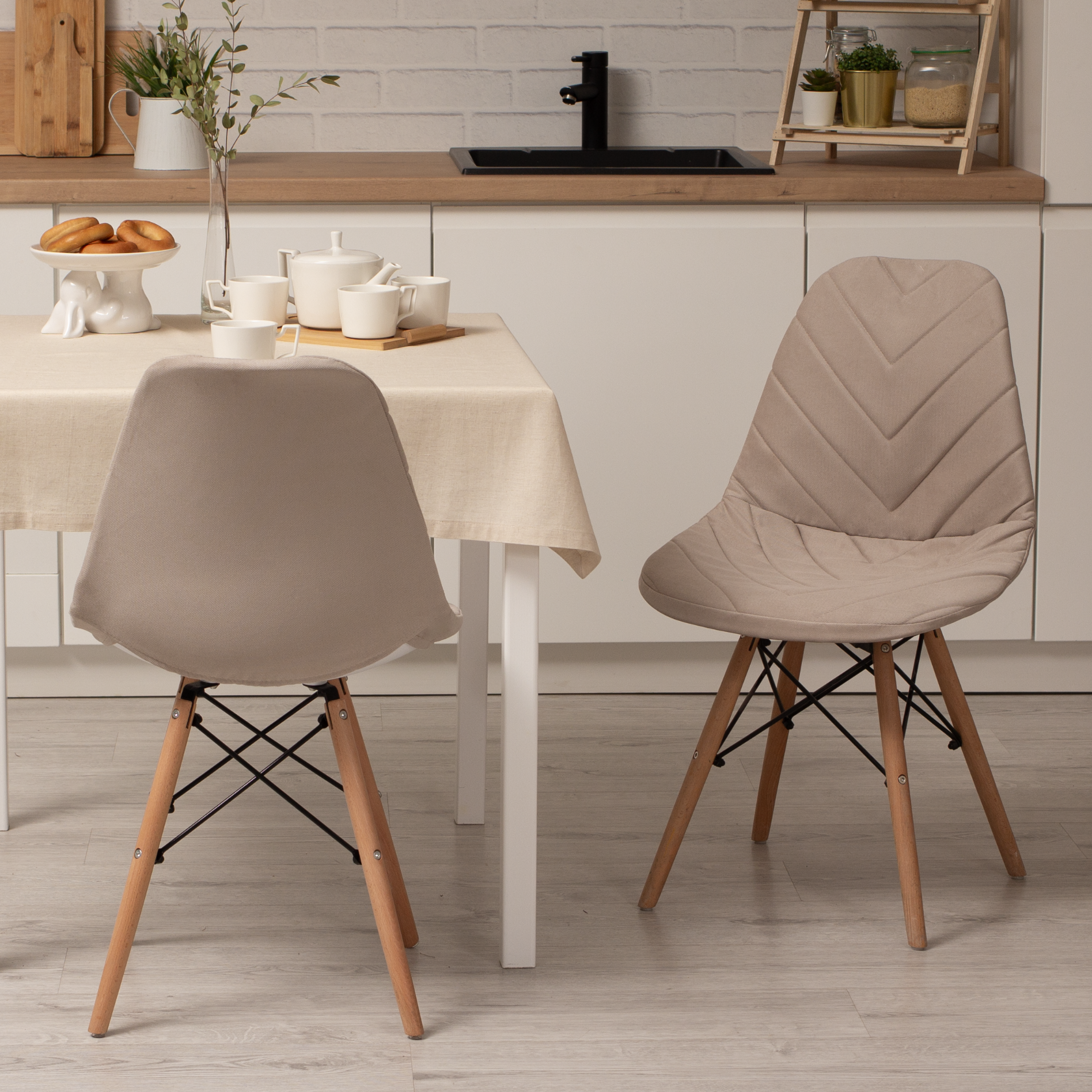 Купить Комплект чехлов на стулья со спинкой Eames из микровелюра, 40х46см, бежевый, 2шт