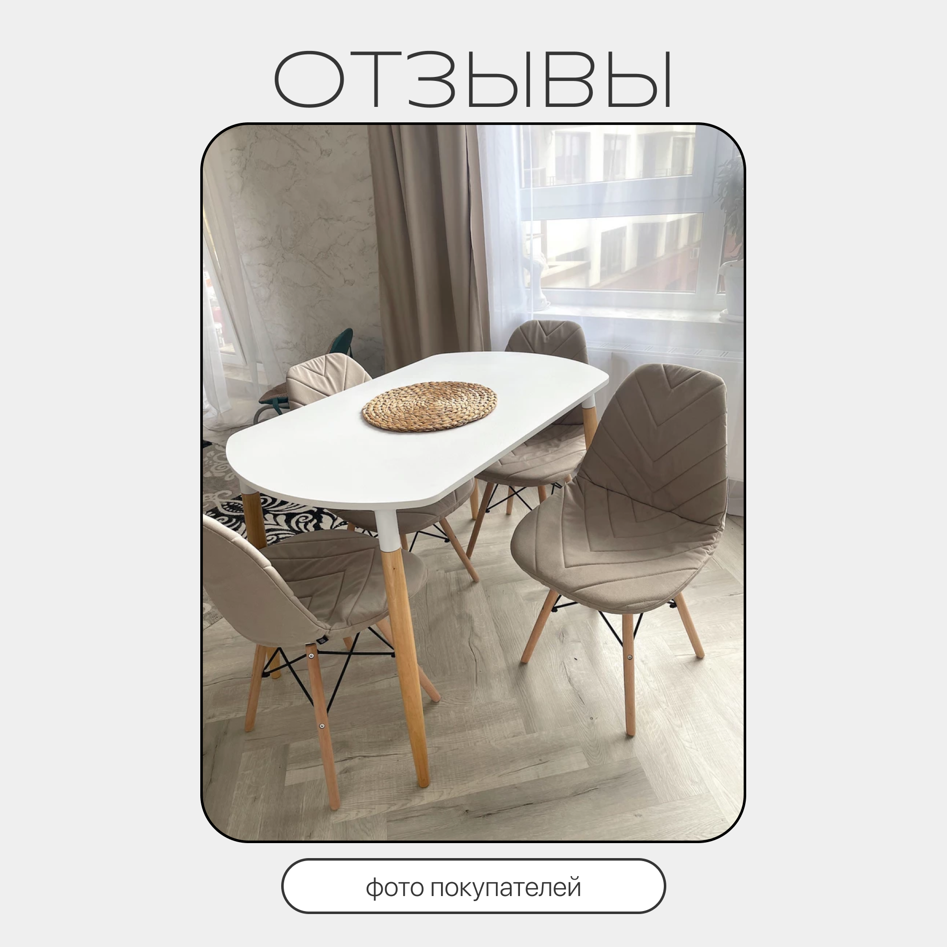 Ниже Вы можете прочитать отзывы на Комплект чехлов на стулья со спинкой Eames из микровелюра, 40х46см, бежевый, 2шт, ознакомится с подробными характеристиками, посмотреть интересные обзоры и фотографии на Комплект чехлов на стулья со спинкой Eames из микровелюра, 40х46см, бежевый, 2шт.