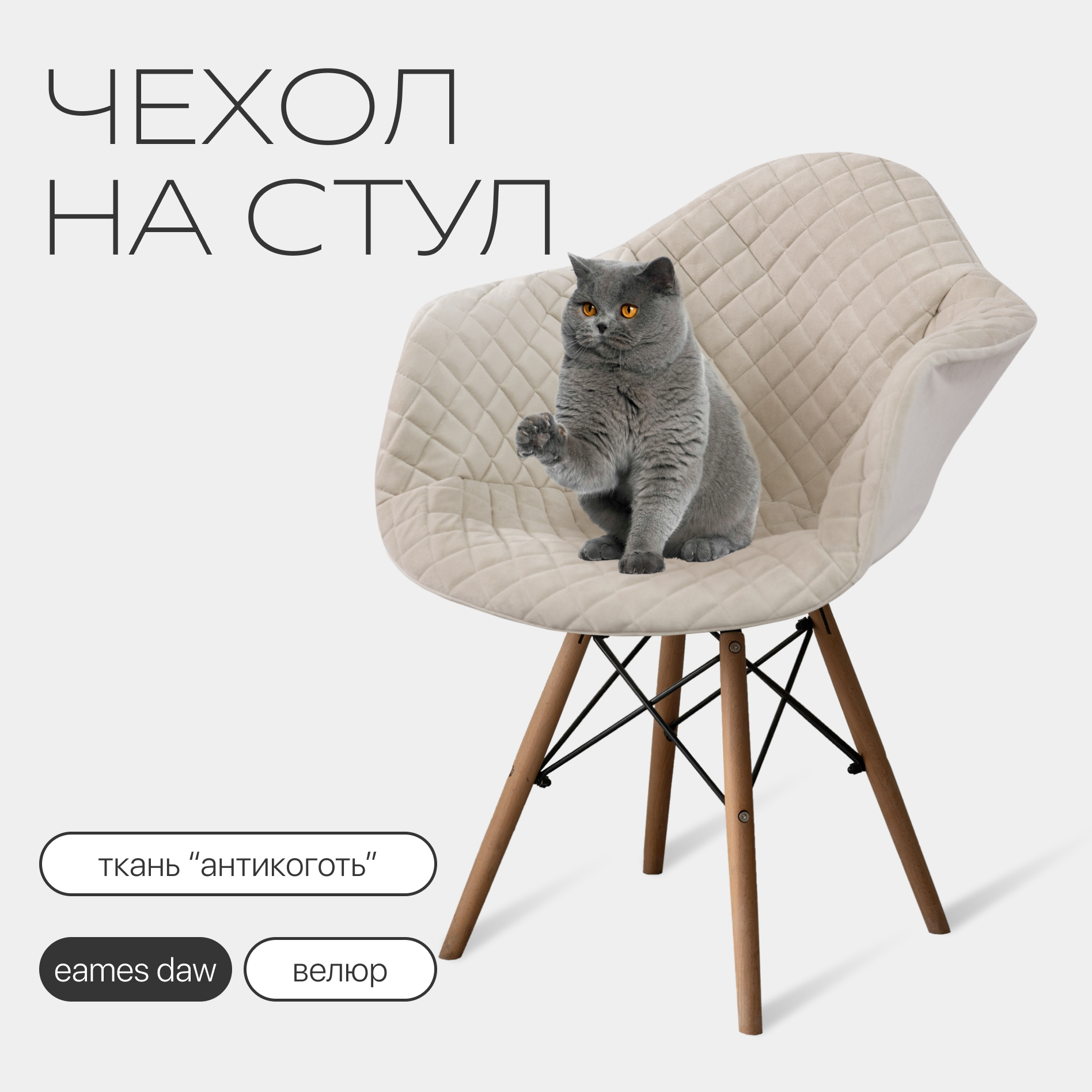 Чехол на стул Eames Daw из велюрового материала, цвет бежевый, с прострочкой 07 интересное: