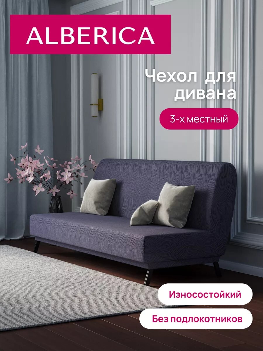 Чехол ALBERICA, для дивана без подлокотников, жаккард, серый