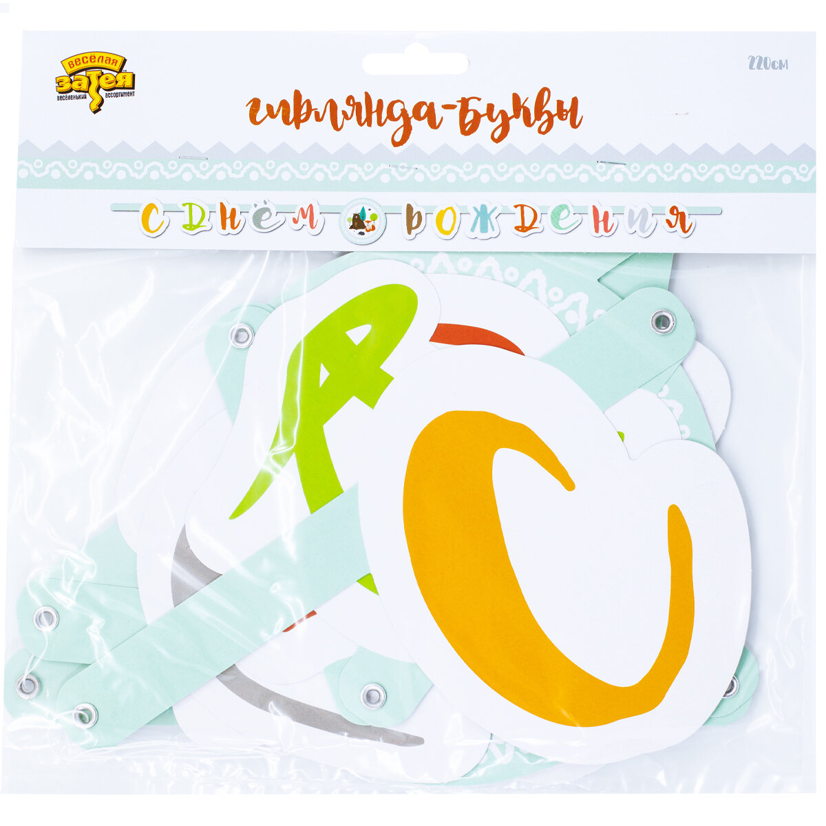 Гирлянда Веселая затея "С днем Рождения", Лунтик, буквы, 210 см