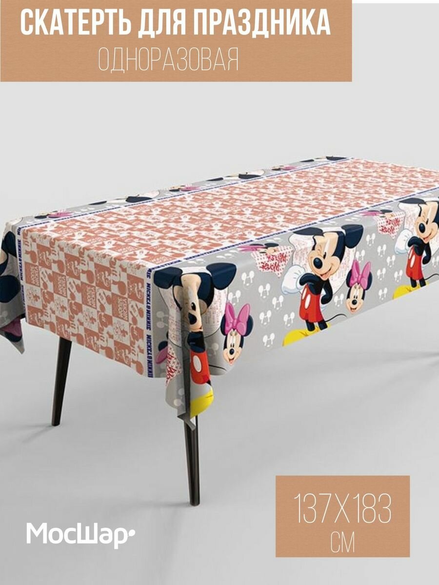 Скатерть Мосшар "Микки маус", 110x187 см, одноразовая, полиэтилен, водоотталкивающая