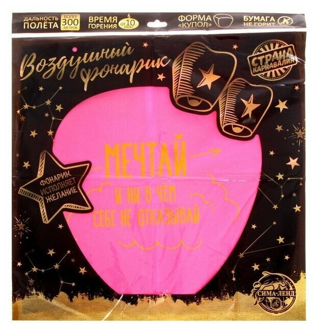 Фонарик желаний "Мечтай" купол, негорючая бумага, китайский фонарь, для детей и малышей, цвет розовый интересное:
