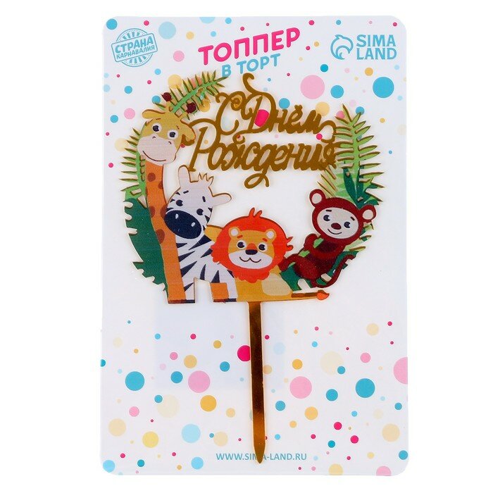 Купить Топпер Страна Карнавалия "С Днём Рождения" с животными